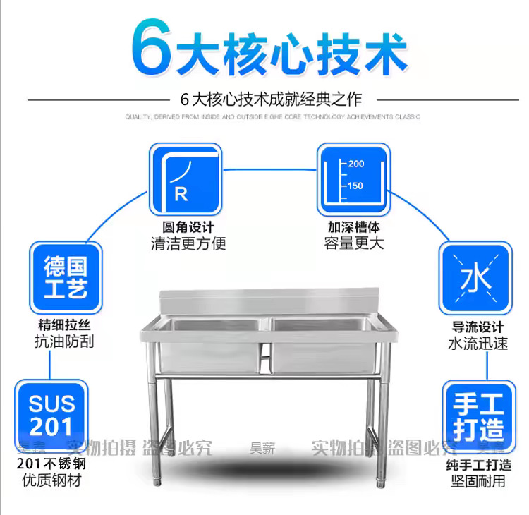 Коммерческая однослотовая раковина из нержавеющей стали для кухни, раковина для мытья овощей, раковина для мытья посуды, комплект раковины и умывальника интегрированный, утолщенный