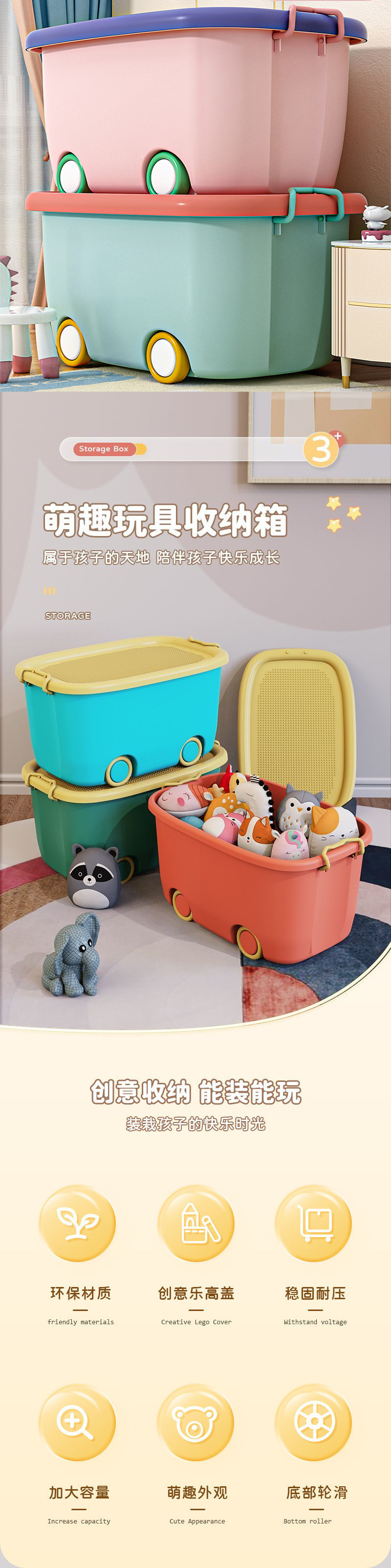 Ящик для хранения детских игрушек, пластиковый, домашний, для хранения детской одежды, закусок, книг и строительных блоков