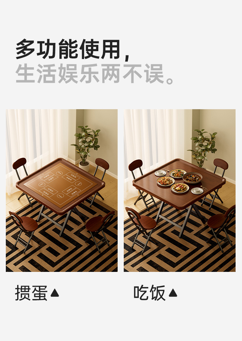 Стол для маджонга и покера без яиц, двухцелевой обеденный стол с подушкой, квадратный складной стол для шахмат и карточной комнаты