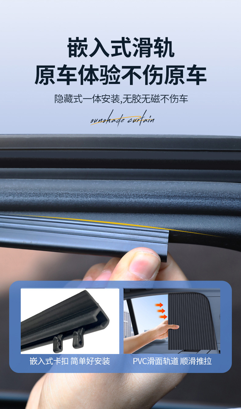 Встроенные автомобильные занавесы, автомобильные солнцезащитные экраны, ткани для защиты от солнца бокового окна, автомобильные выдвижные скользящие направляющие внутри автомобиля