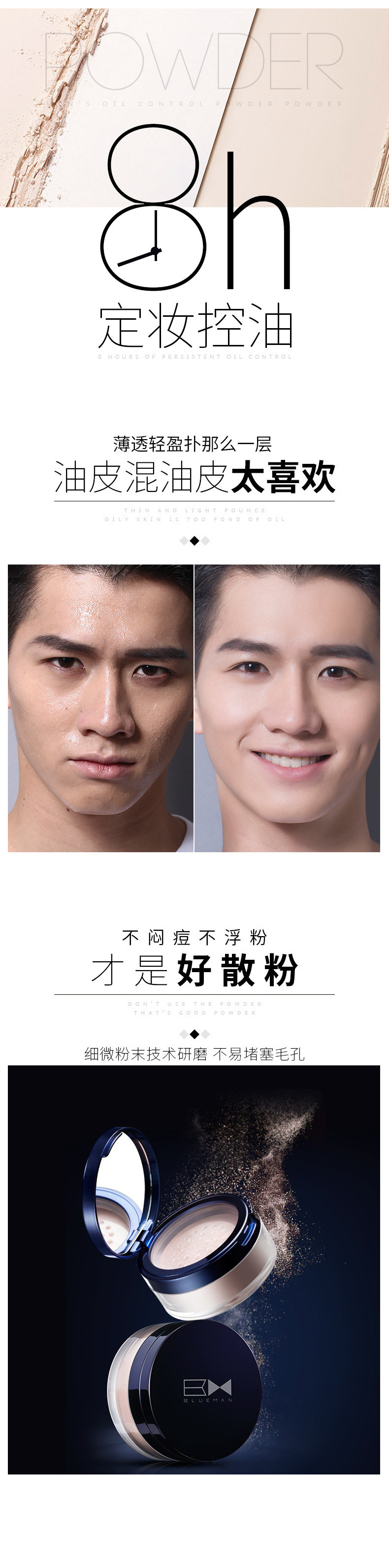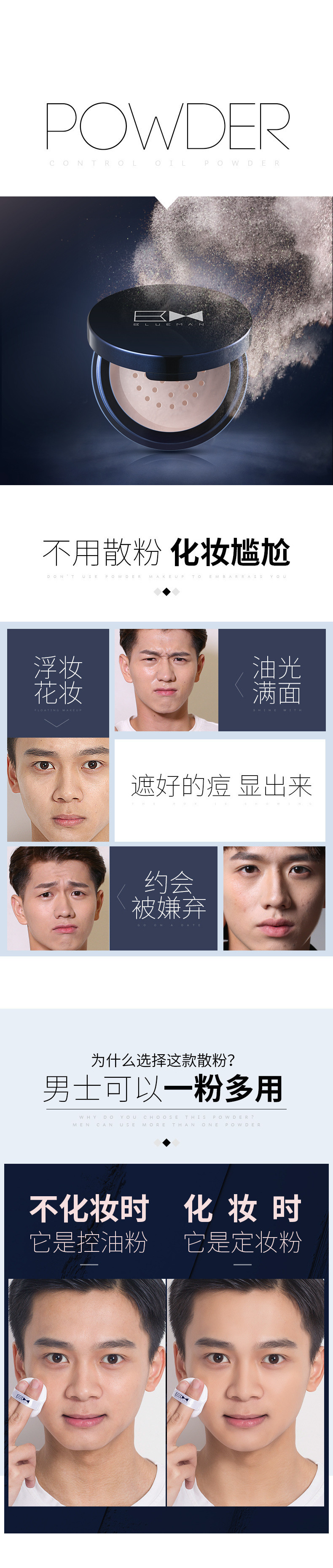 Пудровая основа для макияжа Zunlan для мужчин, контроль масла, водостойкая и потоотталкивающая, легкая и не смывающаяся косметика