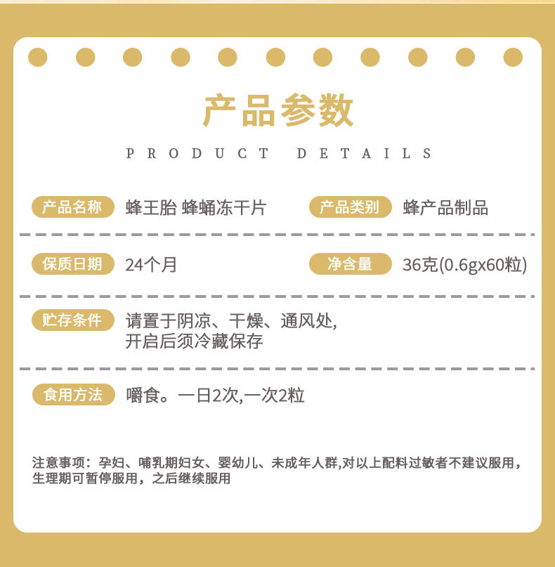 ![]() | Queen bee freeze-dried tablet candy 36g (0.6gx60 capsules) | 2шт: ¥8.70, 2000шт: ¥8.50, 6000шт: ¥8.40 | 9966 | 5959852714556 |