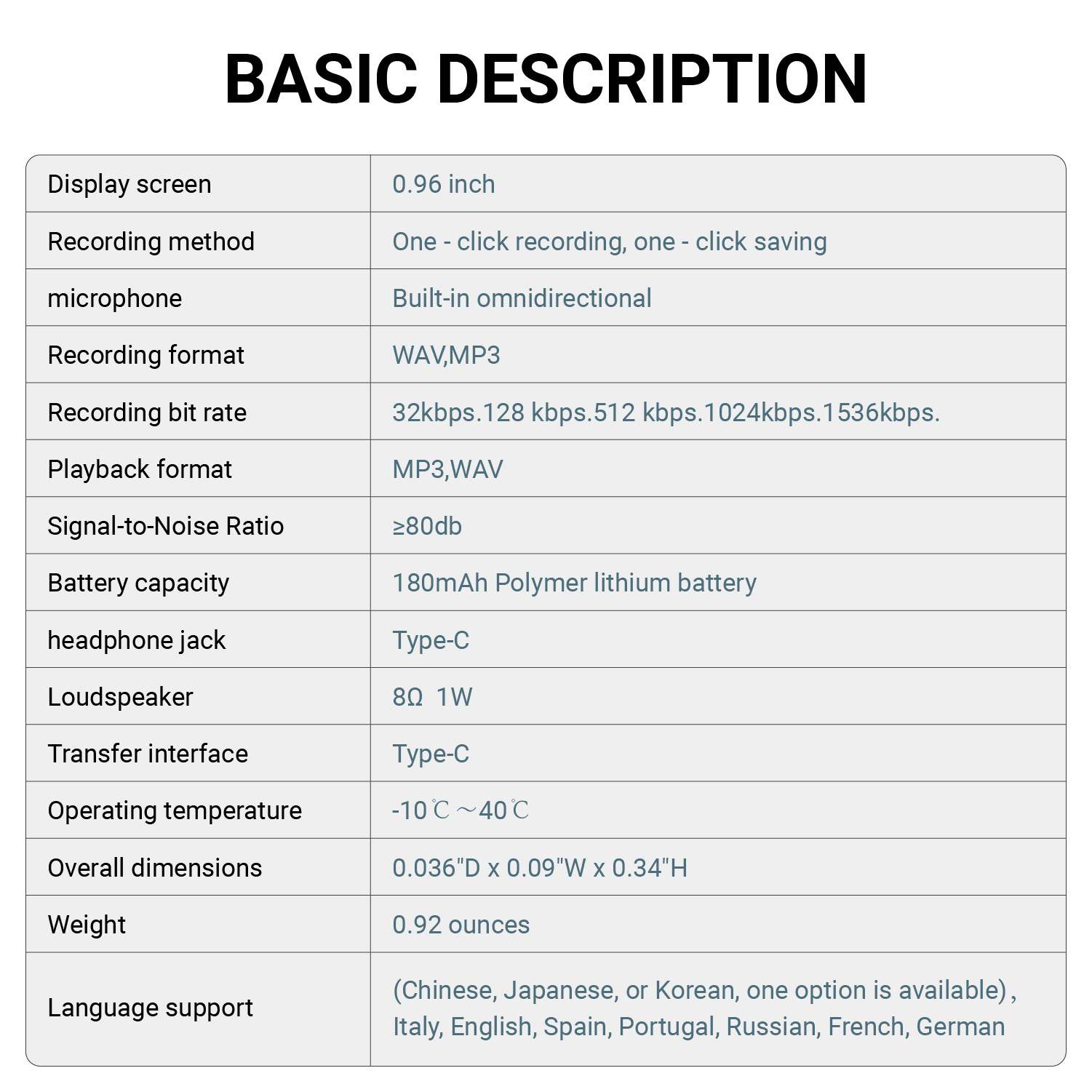 Кросс-бордерная записывающая ручка с литиевым аккумулятором, ультра-долгое время записи, поддержка 8 языков, высококачественное шумоподавление и интеллектуальная запись