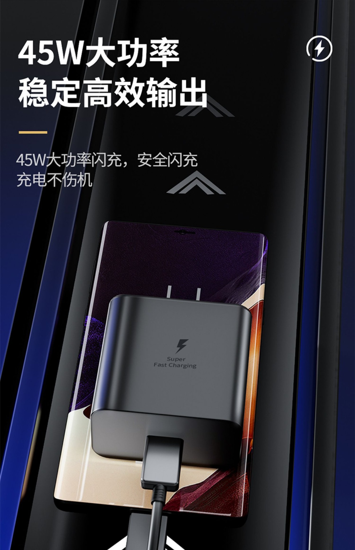 Супер быстрое зарядное устройство 45W для Samsung S20u/S22/S23 Ultra/S24