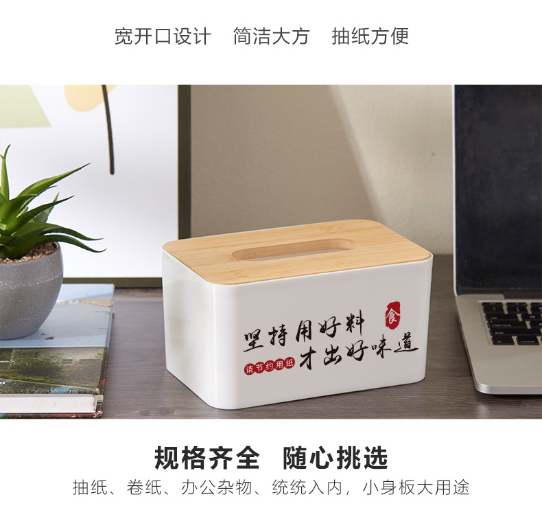 Пластиковая коробка для салфеток с печатью логотипа, деревянная крышка для коробки, настольная коробка для салфеток в ресторане, бамбуковое коммерческое хранилище