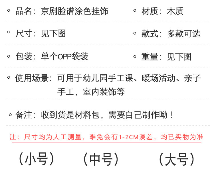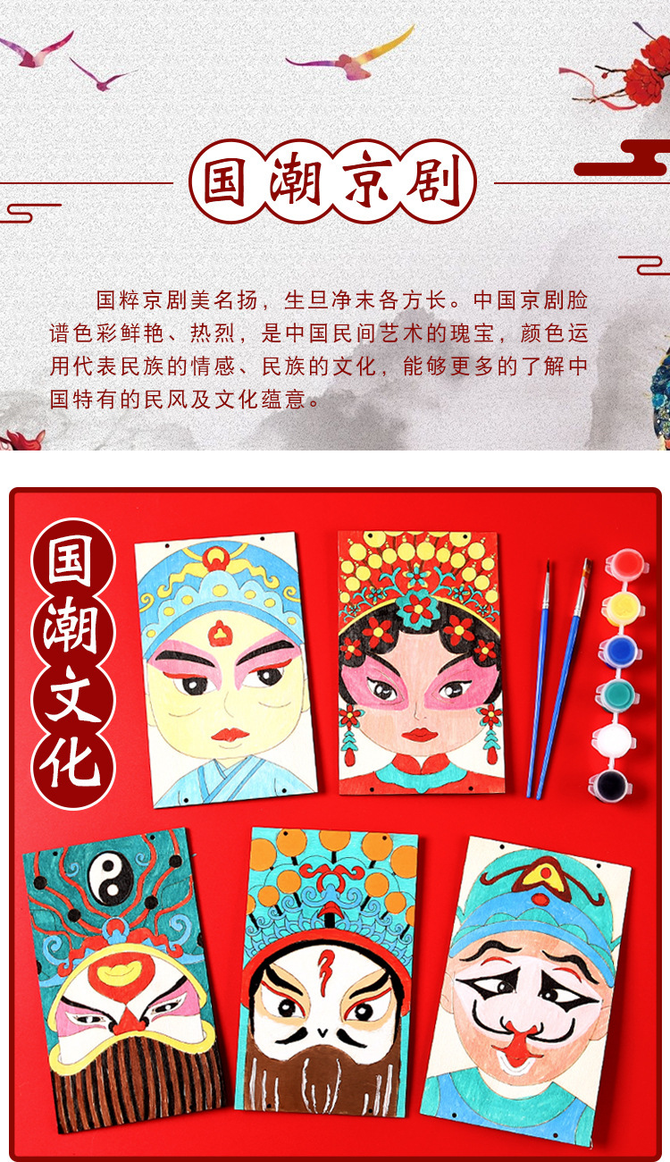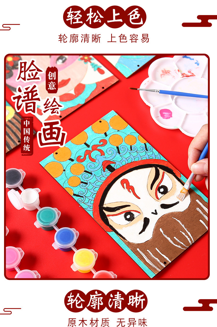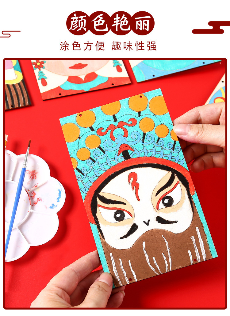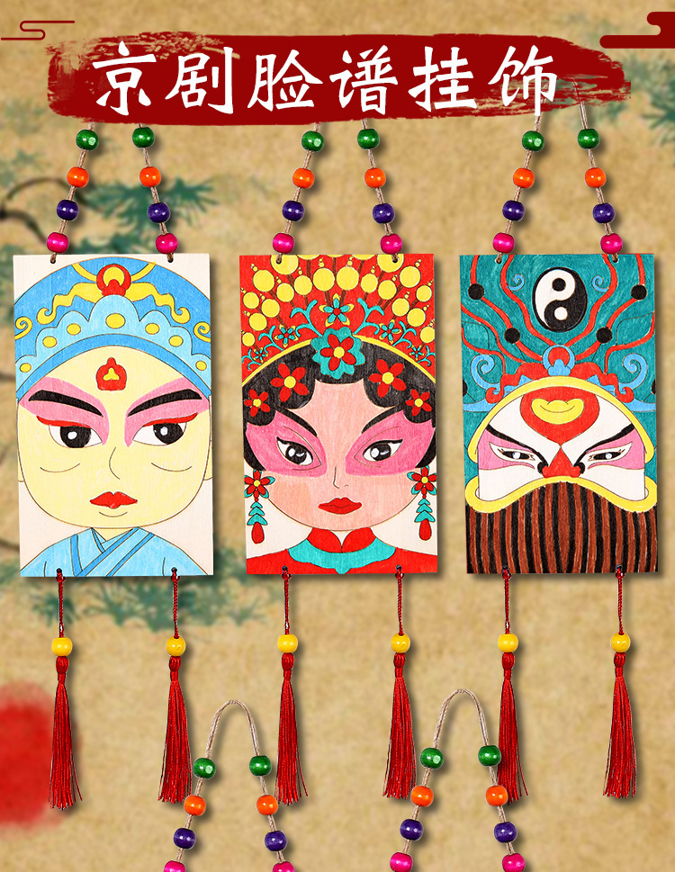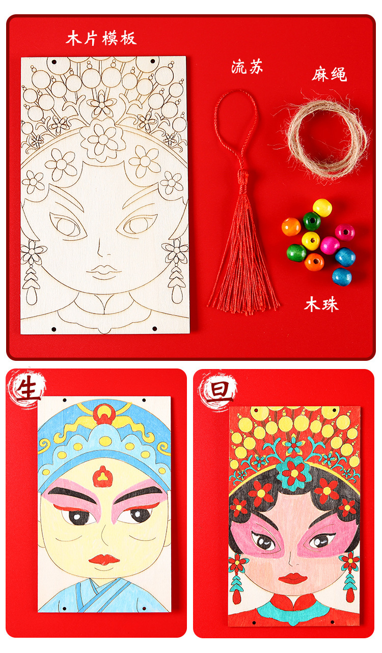 Китайский стиль театра Пекинской оперы, ручная роспись, DIY раскраска, деревянные изделия, подвесные украшения, декор для детского сада