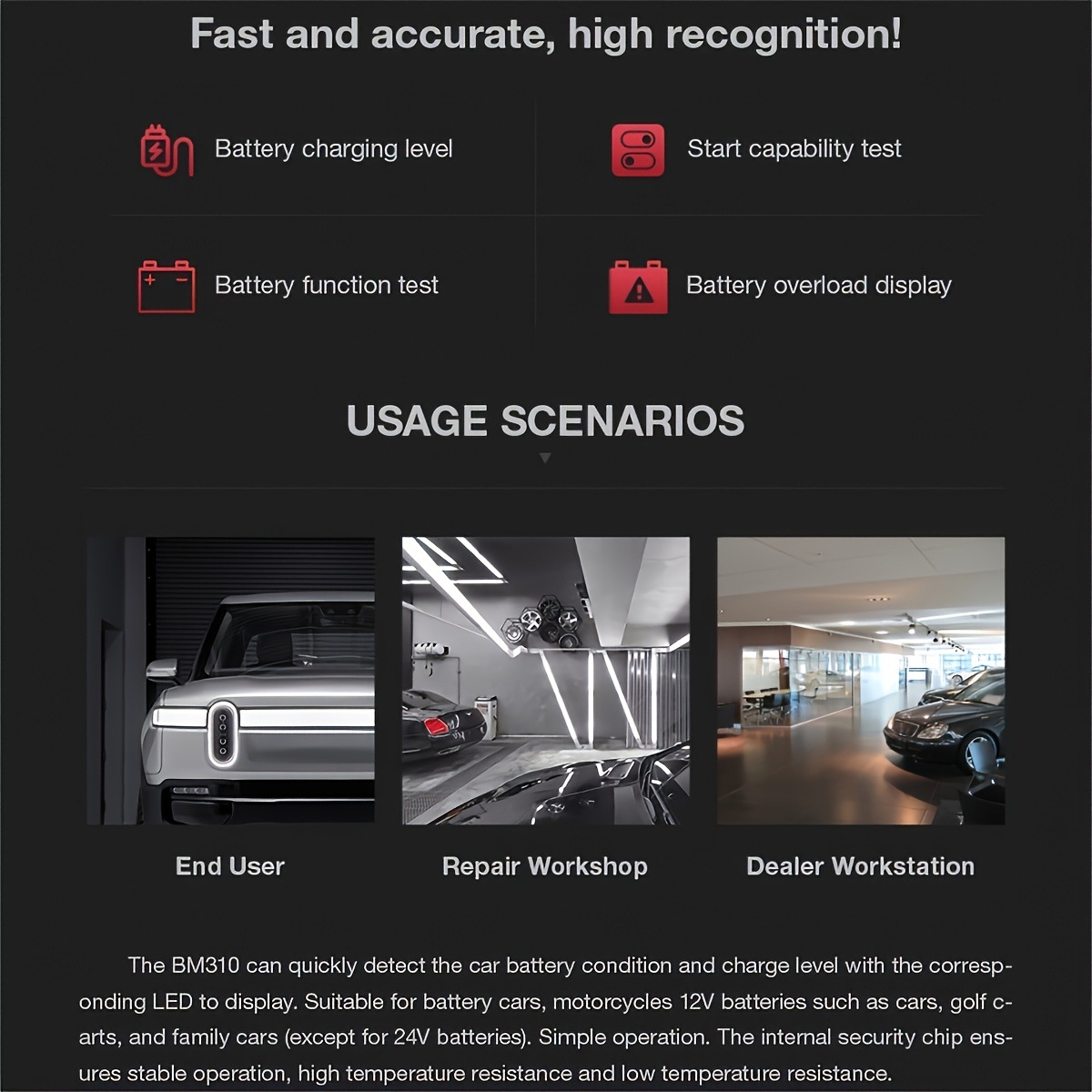 Тестер автомобильного аккумулятора 12V портативный тестер для мотоцикла