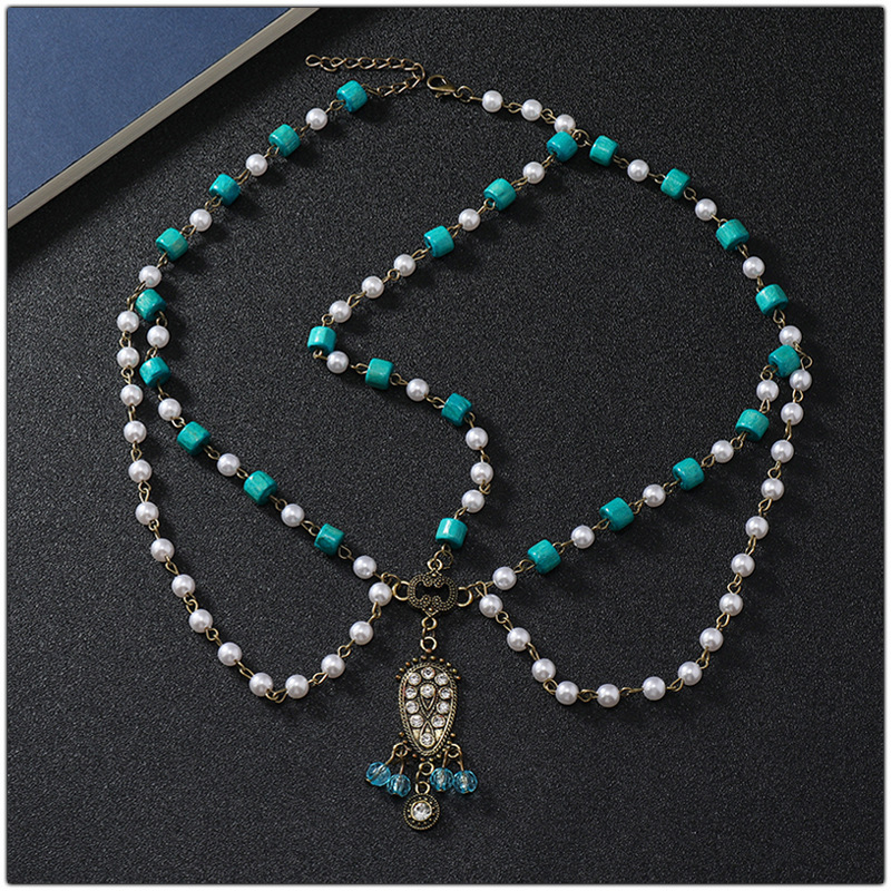 Популярные в Европе и Америке ретро аксессуары с кисточками Экзотическая повязка на голову Бохо ручной работы с синими бусинами для выступлений