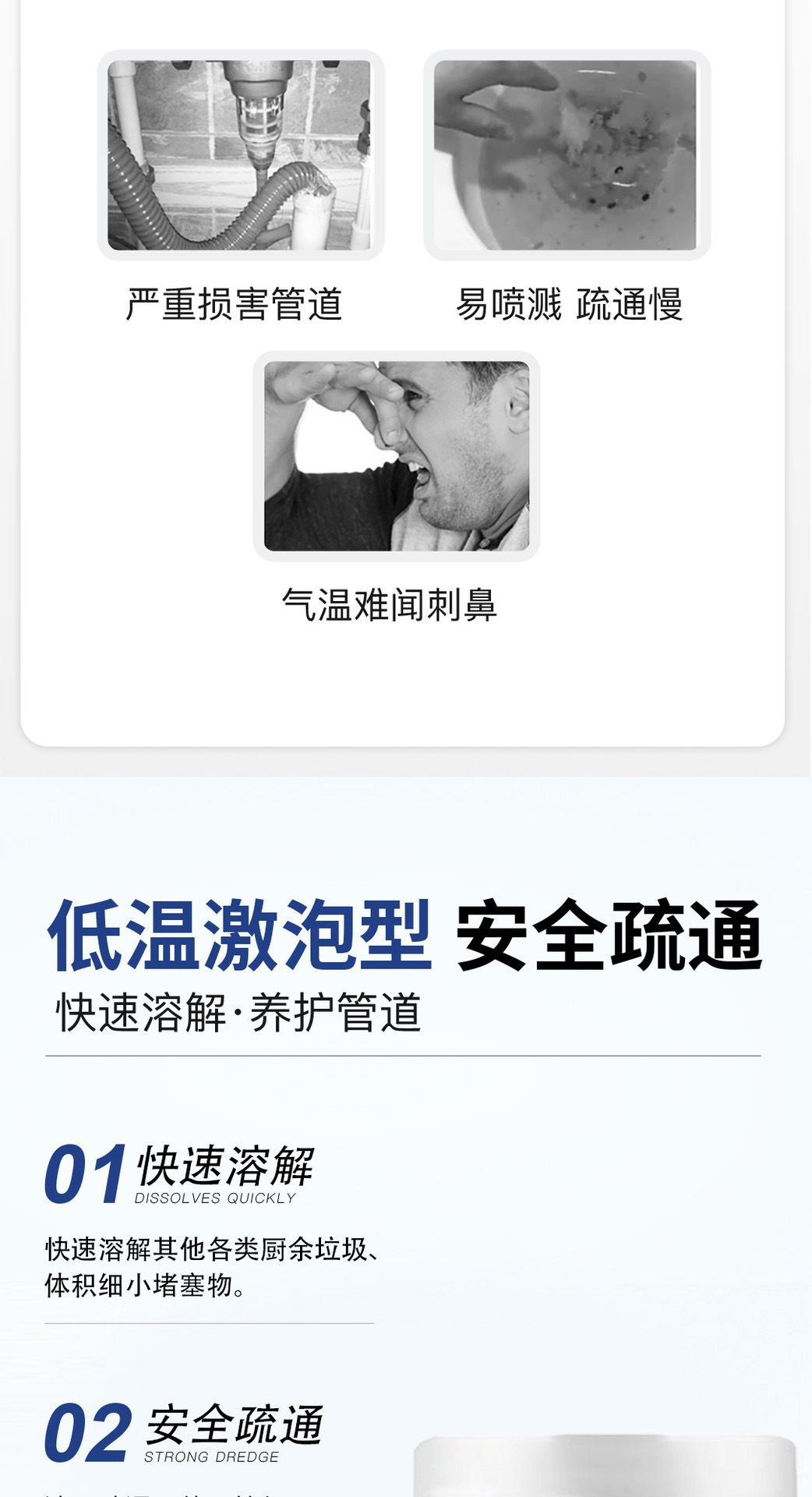 Средство для быстрой прочистки труб с активным кислородом в пузырьковом порошке, мощный растворитель для кухонных стоков и засоров в туалете