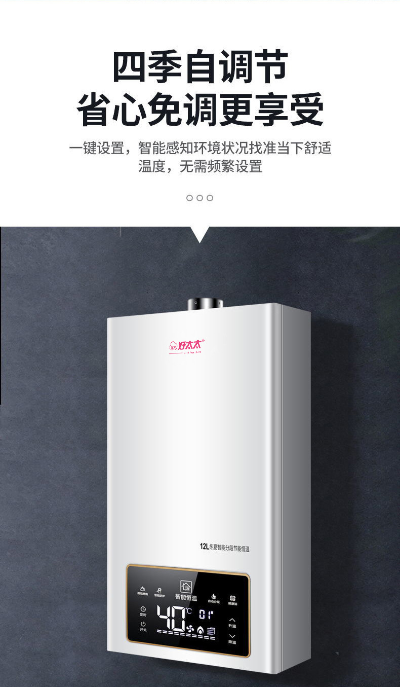 ![]() | High-end model 12 liters + intelligent constant temperature + door-to-door installation (used in one kitchen and one bathroom in rental houses) | Pipeline natural gas | ¥428.0 / ≈ 5 156 ₽ | 8888 | 5795326021613 | |
