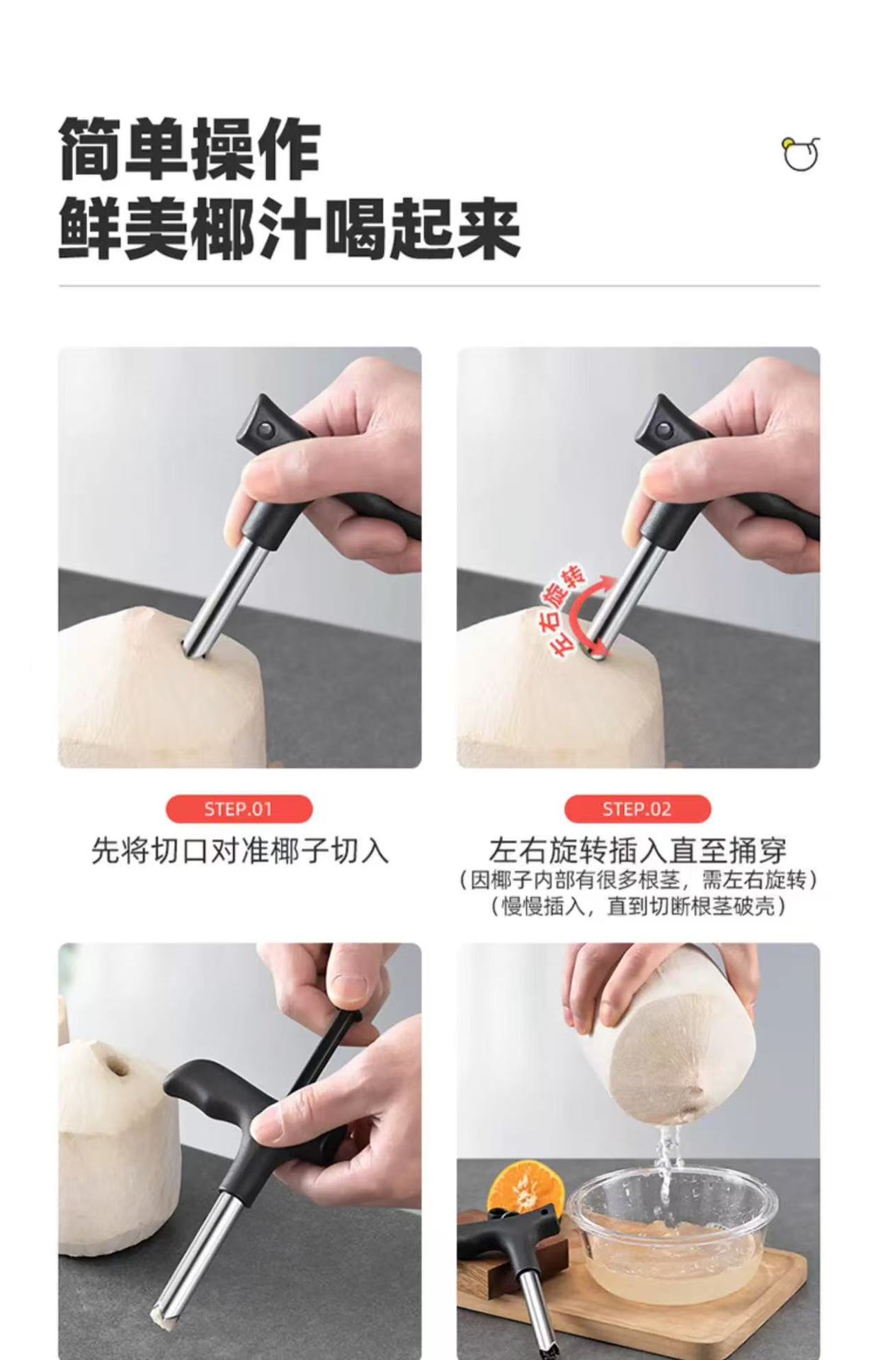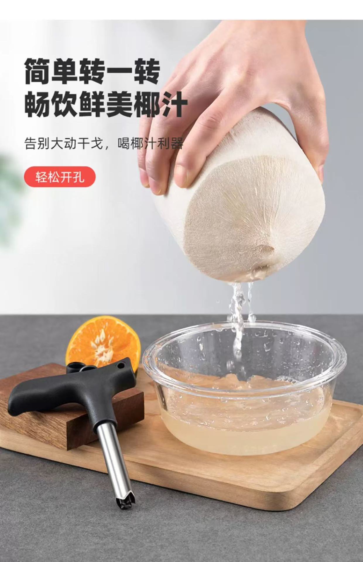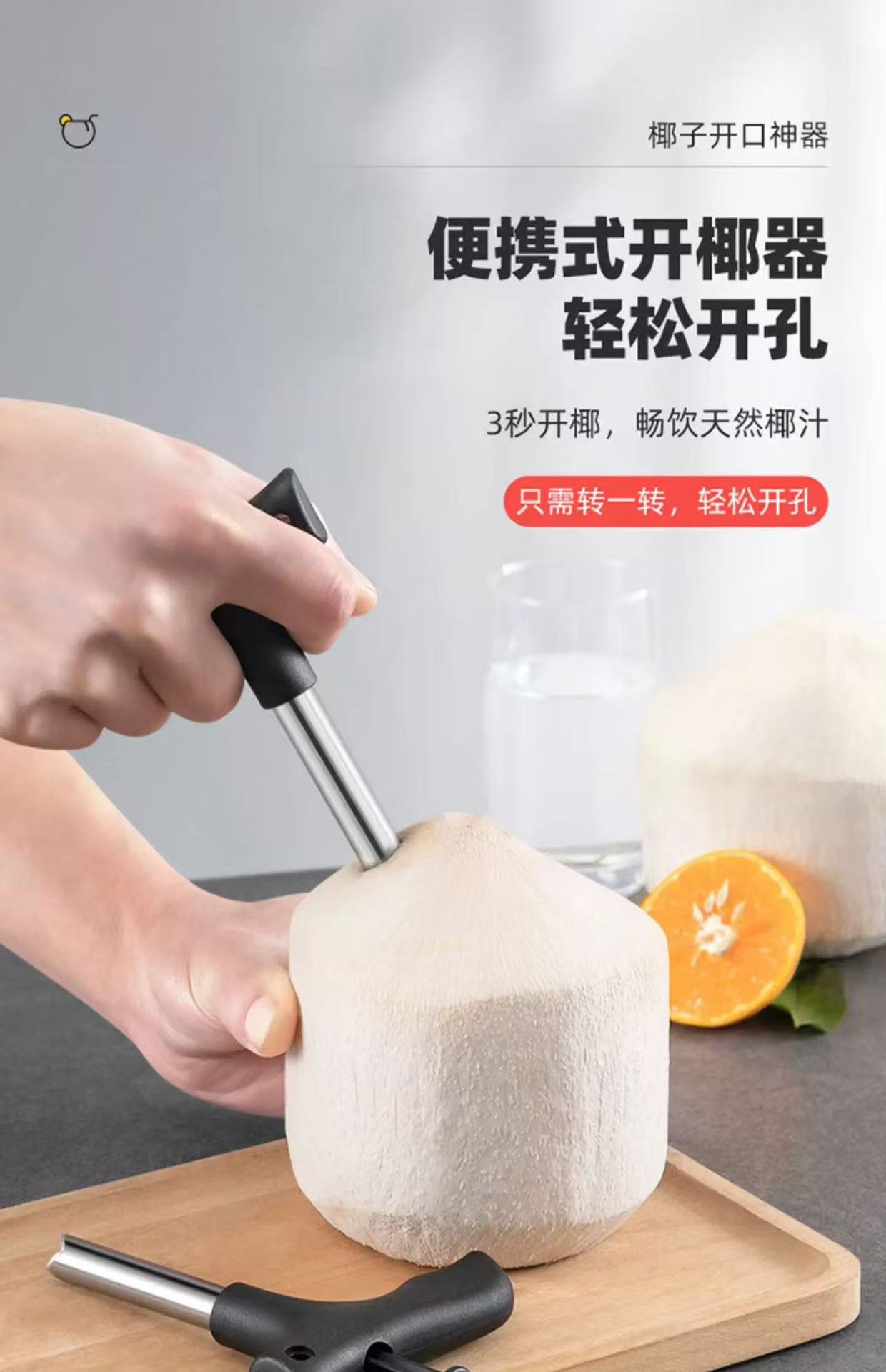 Инструмент для открытия кокосов, удобный штопор из нержавеющей стали, инструмент для вскрытия кокосовой скорлупы