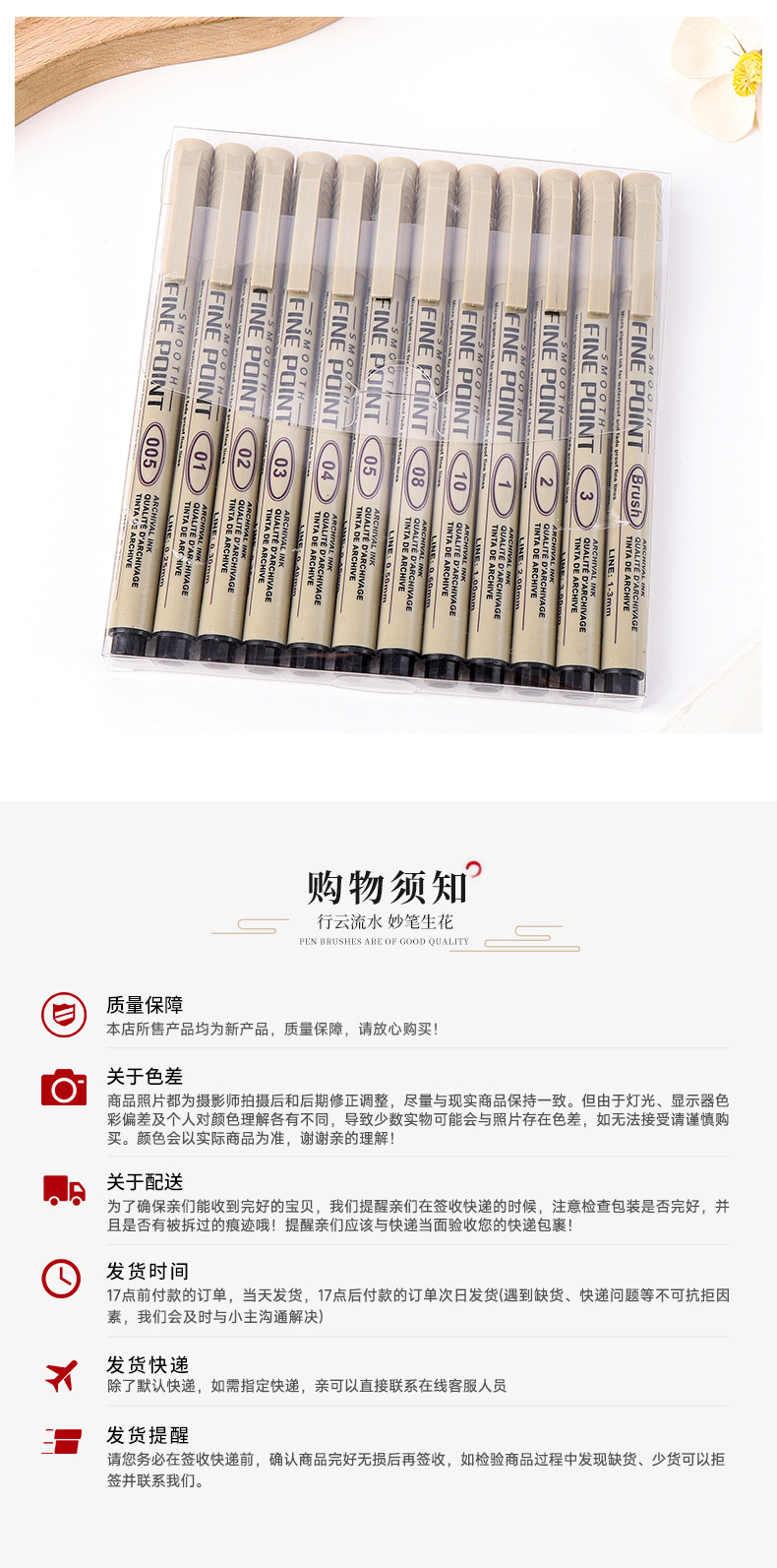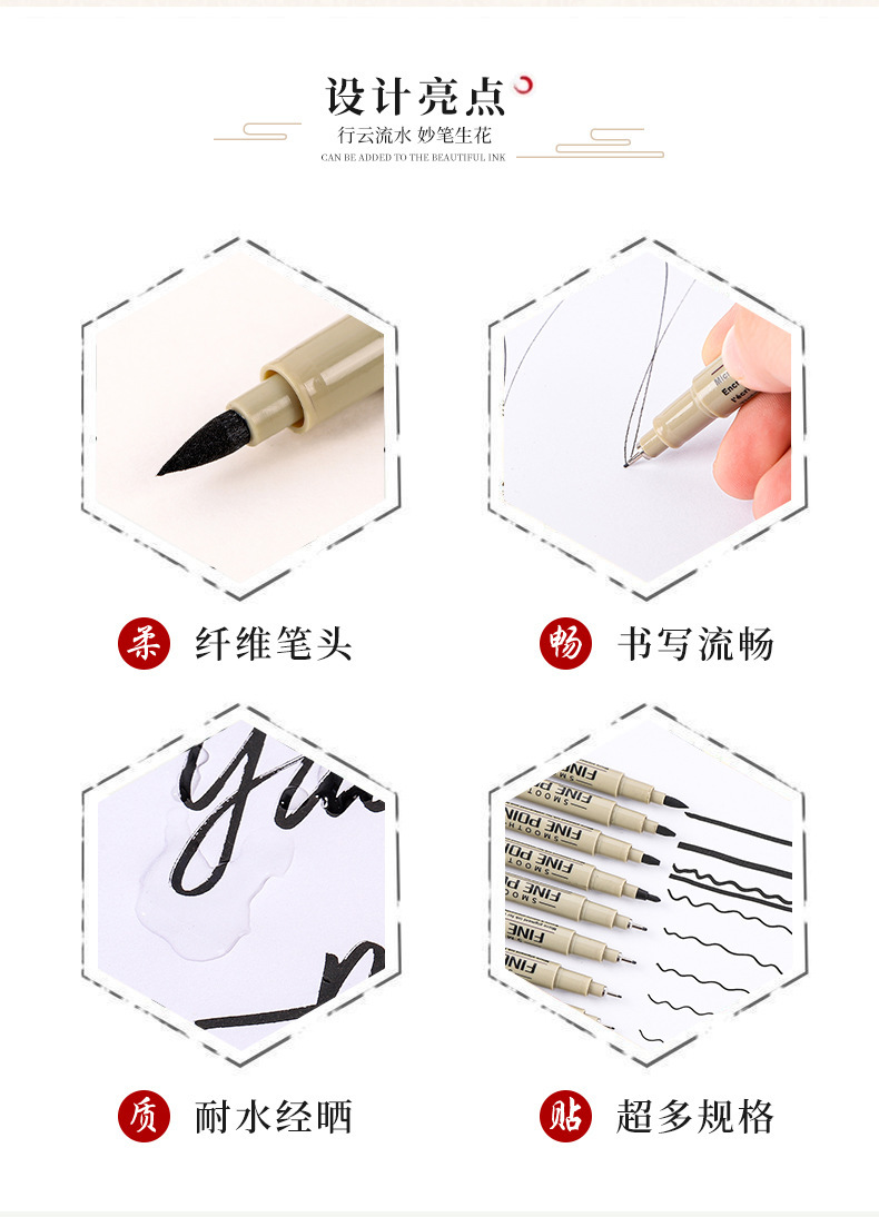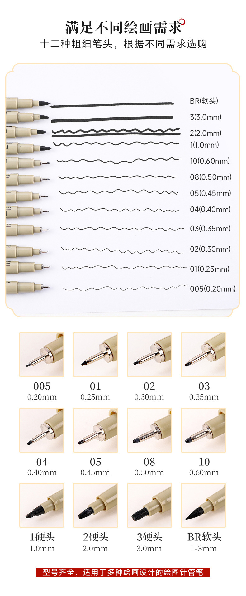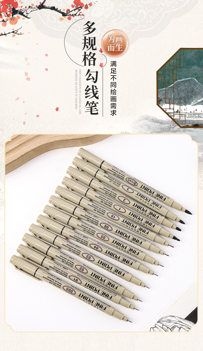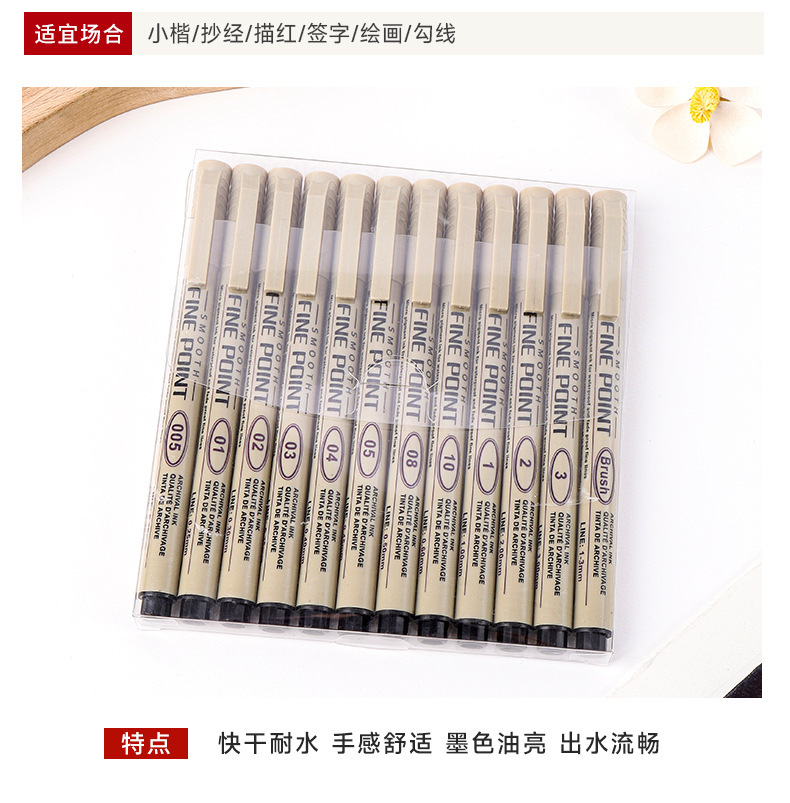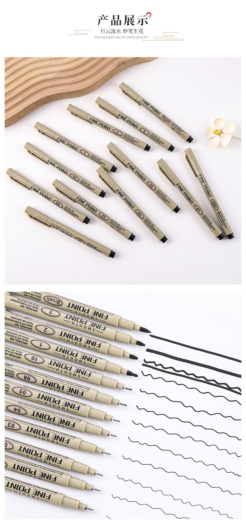 Оптовая продажа художественных игольчатых ручек черного цвета 12 спецификаций набор аниме ручек для рисования ручки для рисования не выцветают