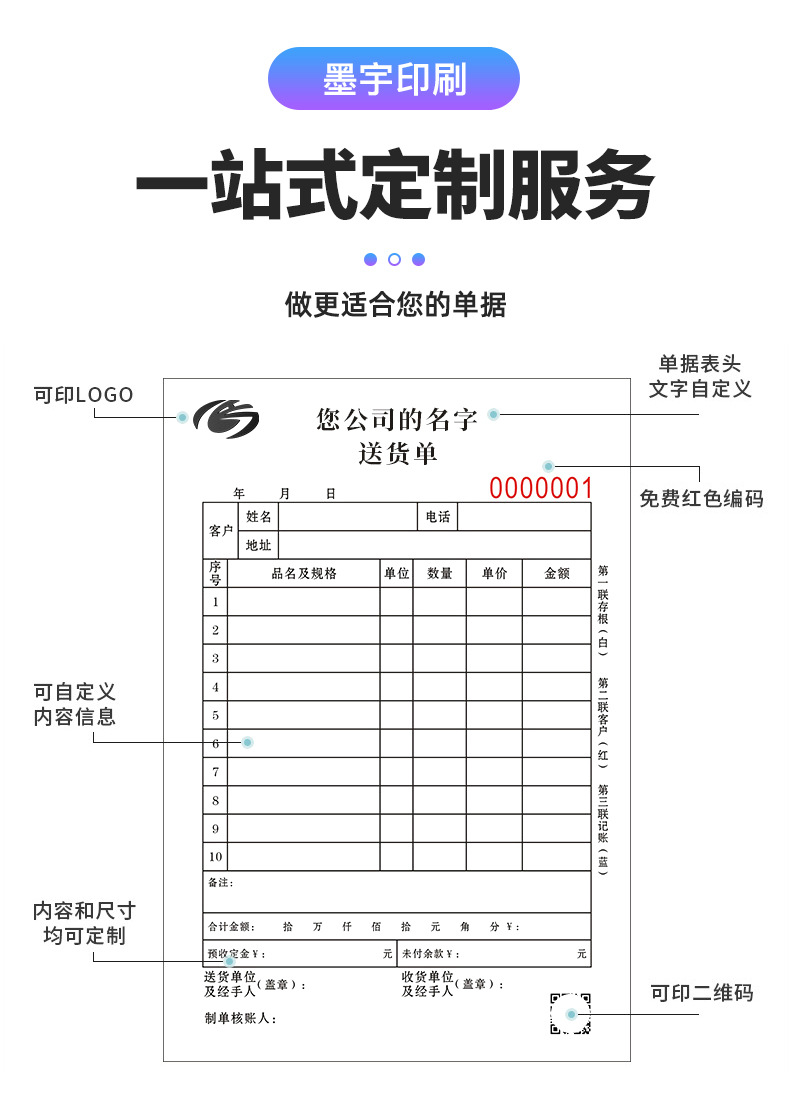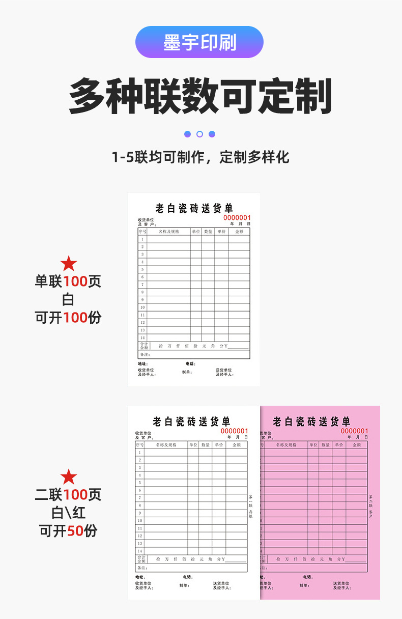 Индивидуальные накладные доставки, списки продаж, двухчастные заметки, трехчастные заметки, многочастные заметки, китайские и английские иностранные языковые заметки, индивидуальные