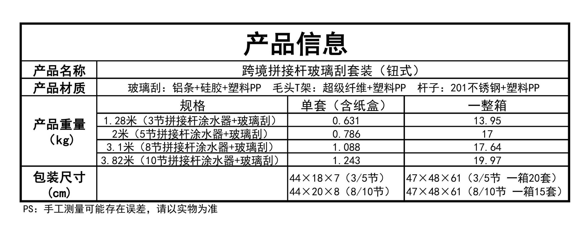 ![]() | 3.82m (10-section splicing rod water applicator + glass scraper) | ¥30.0 / ≈ 362 ₽ | 98295 | 5815504384708 | |