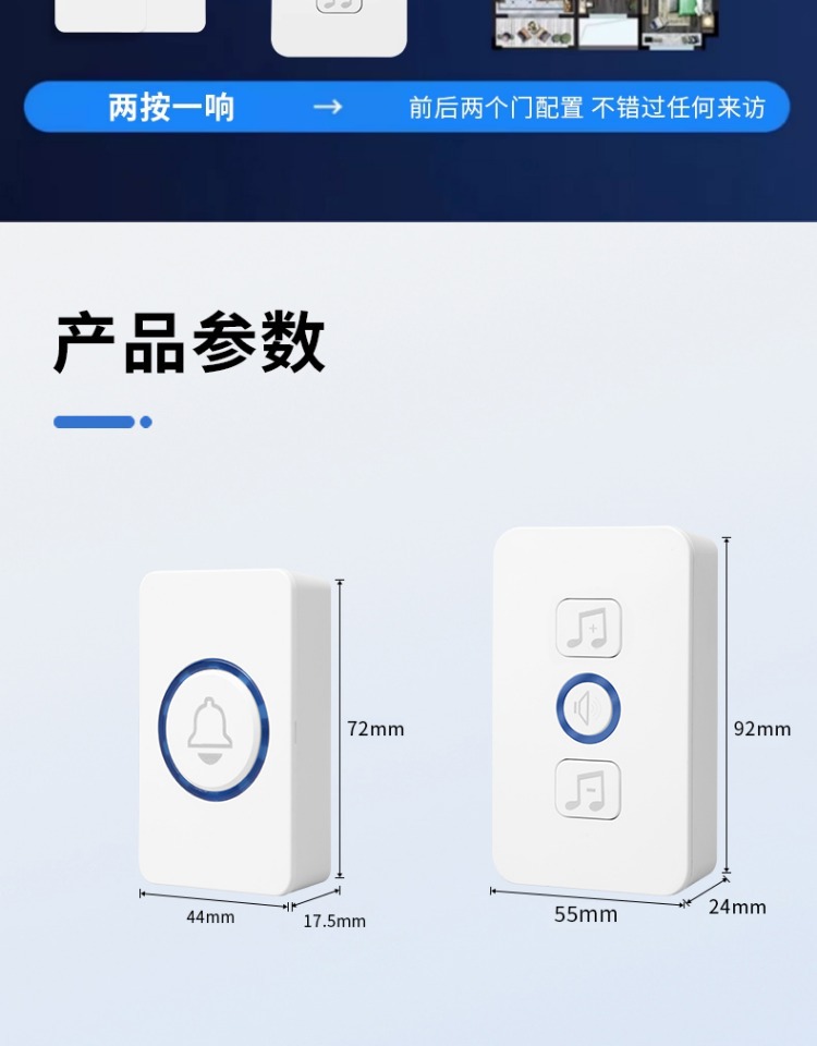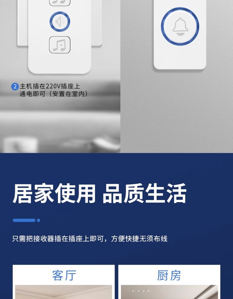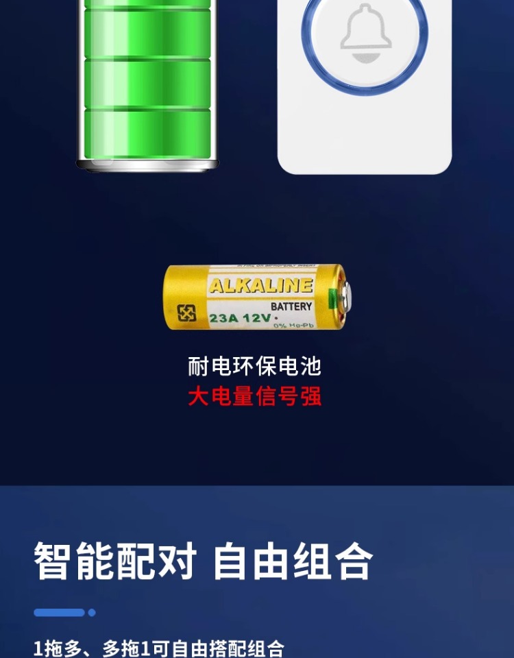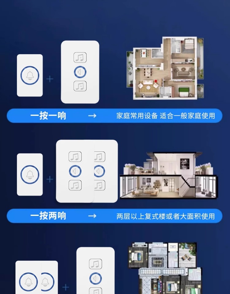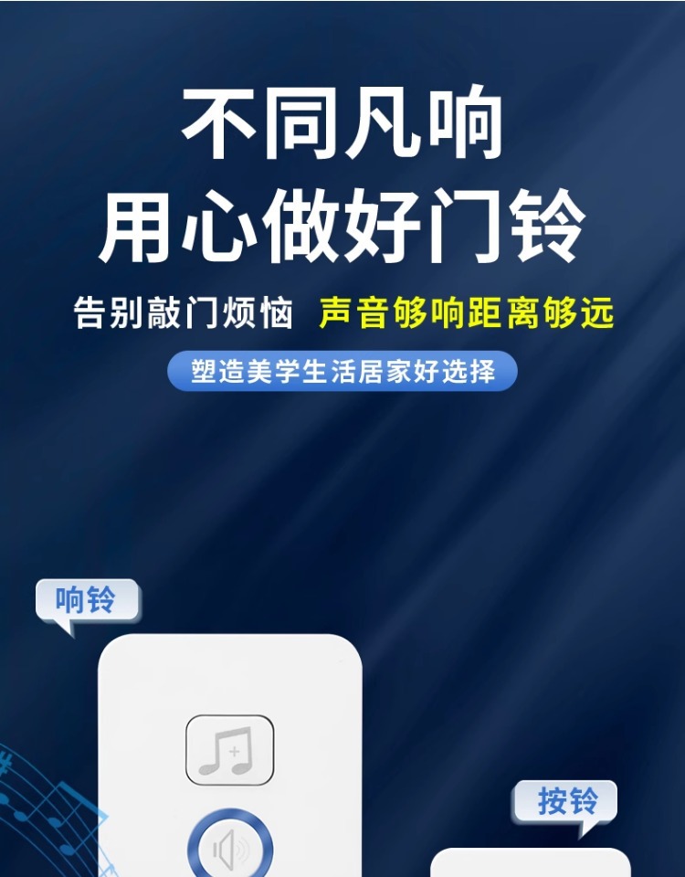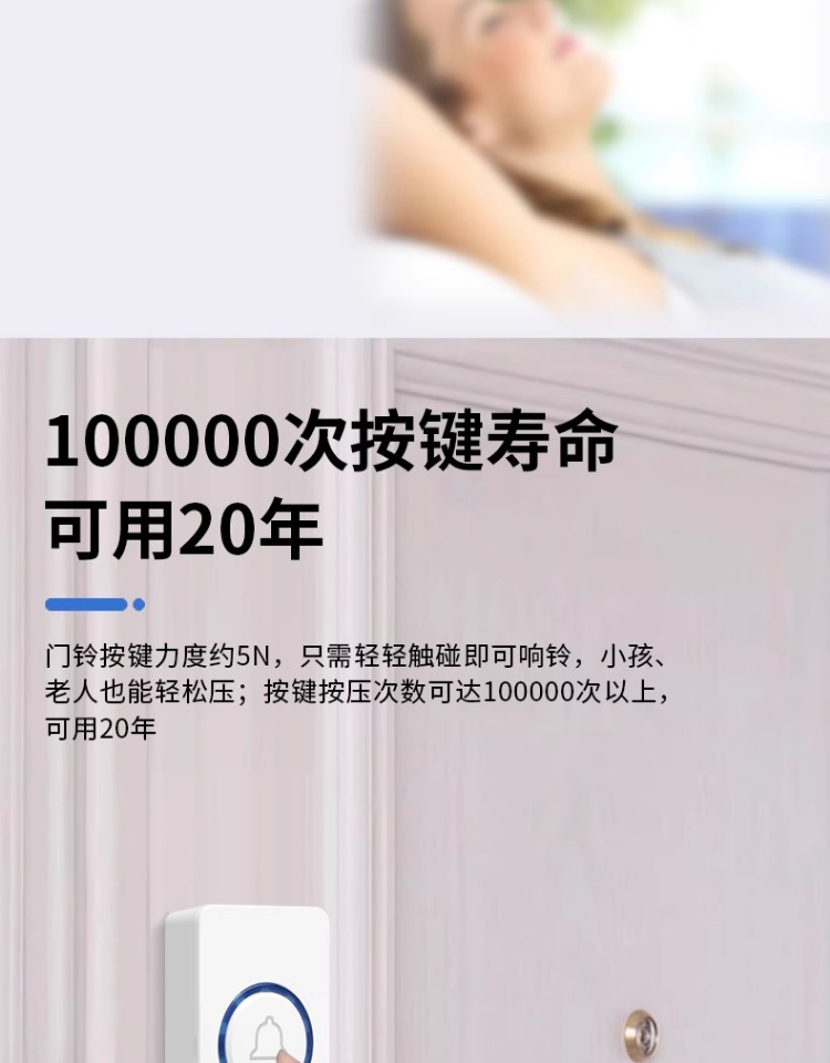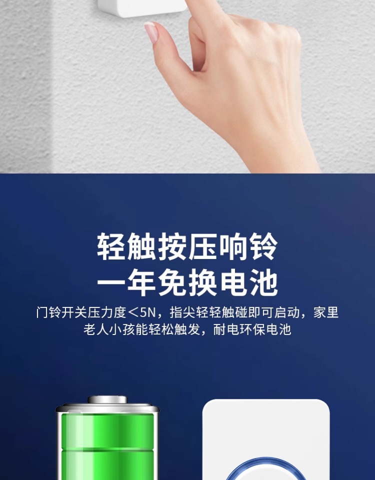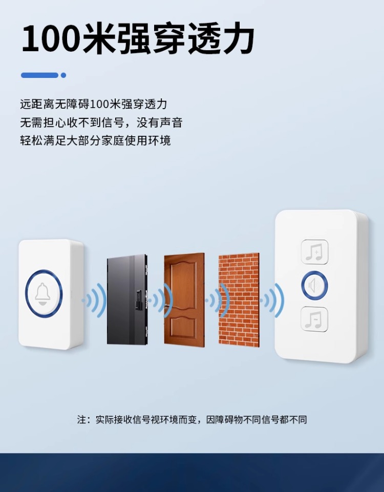 Беспроводной дверной звонок с ультрадлинным дистанционным управлением, домофон без подключения, домашний дверной звонок для пожилых людей