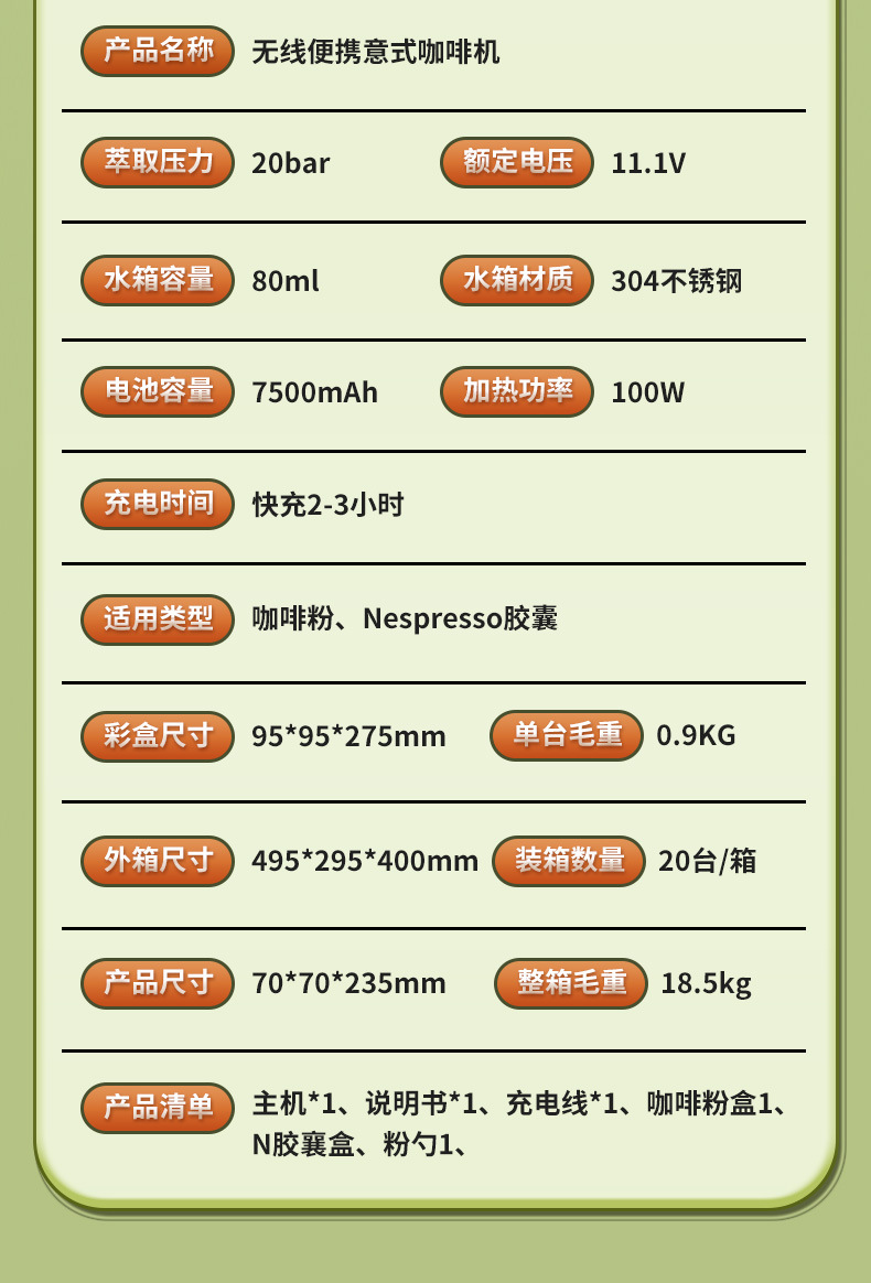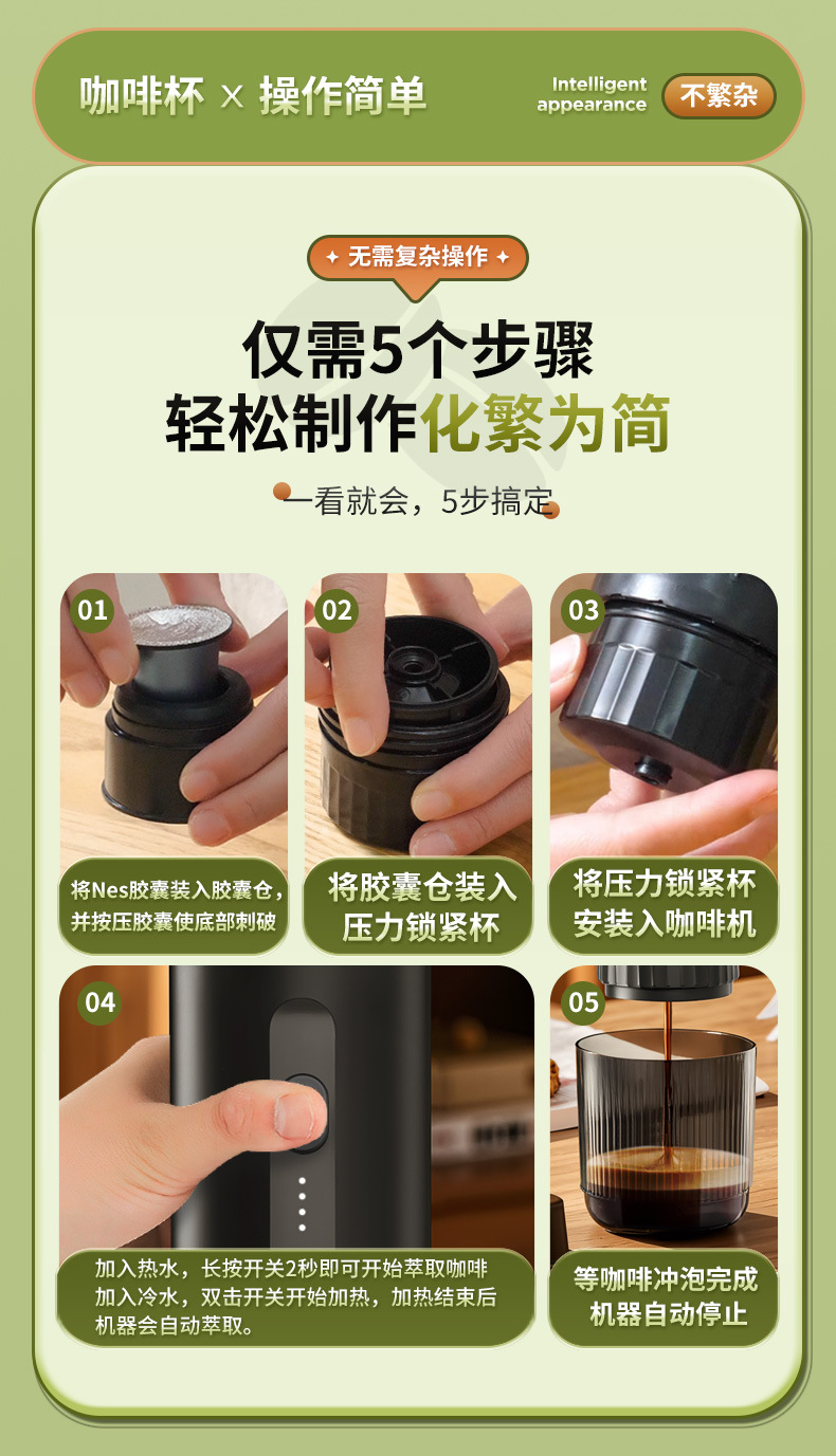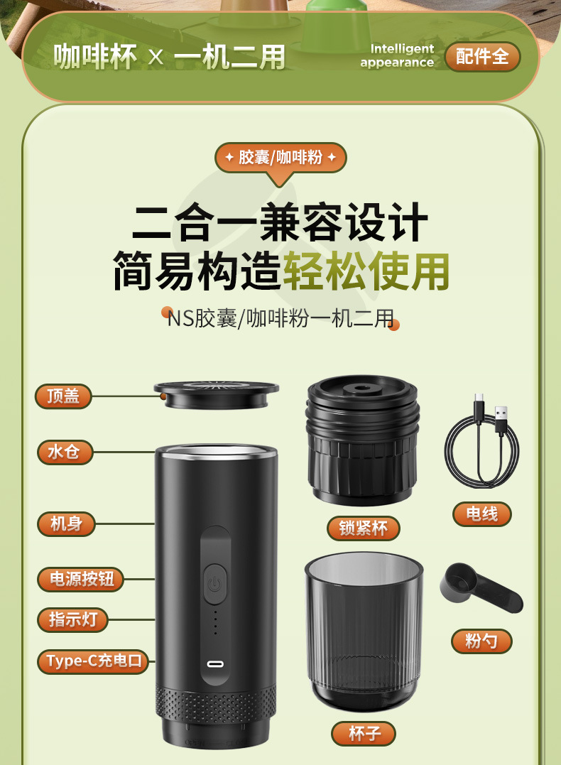 Кросс-бодерная беспроводная портативная капсульная кофемашина, полностью автоматическая, итальянская, с насосным давлением, беспроводной экстракции эспрессо