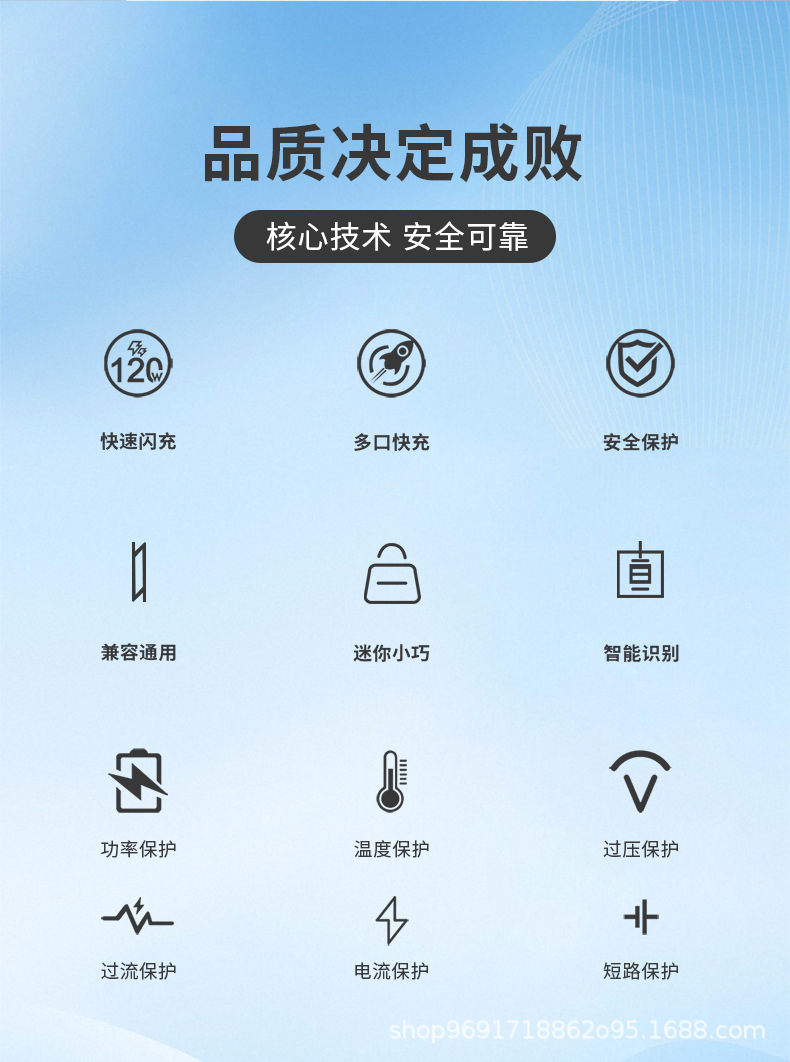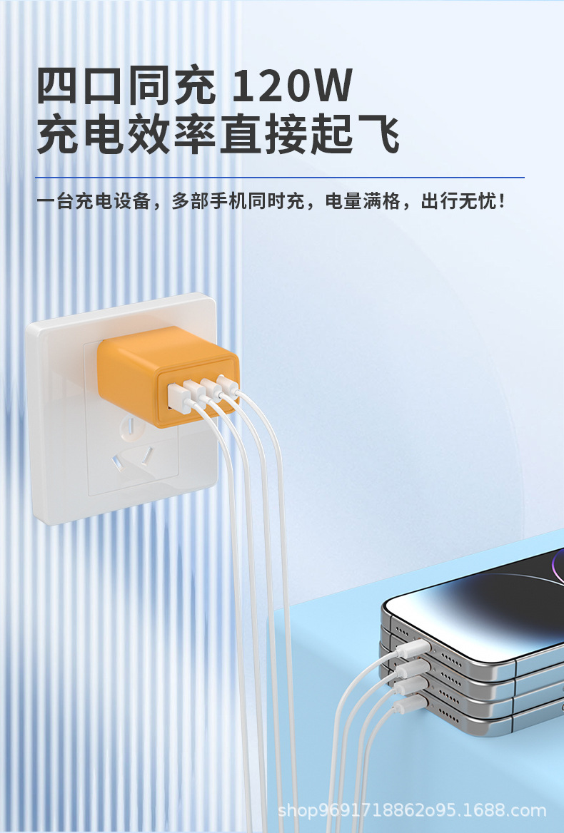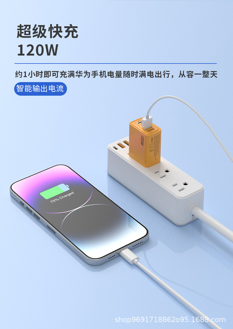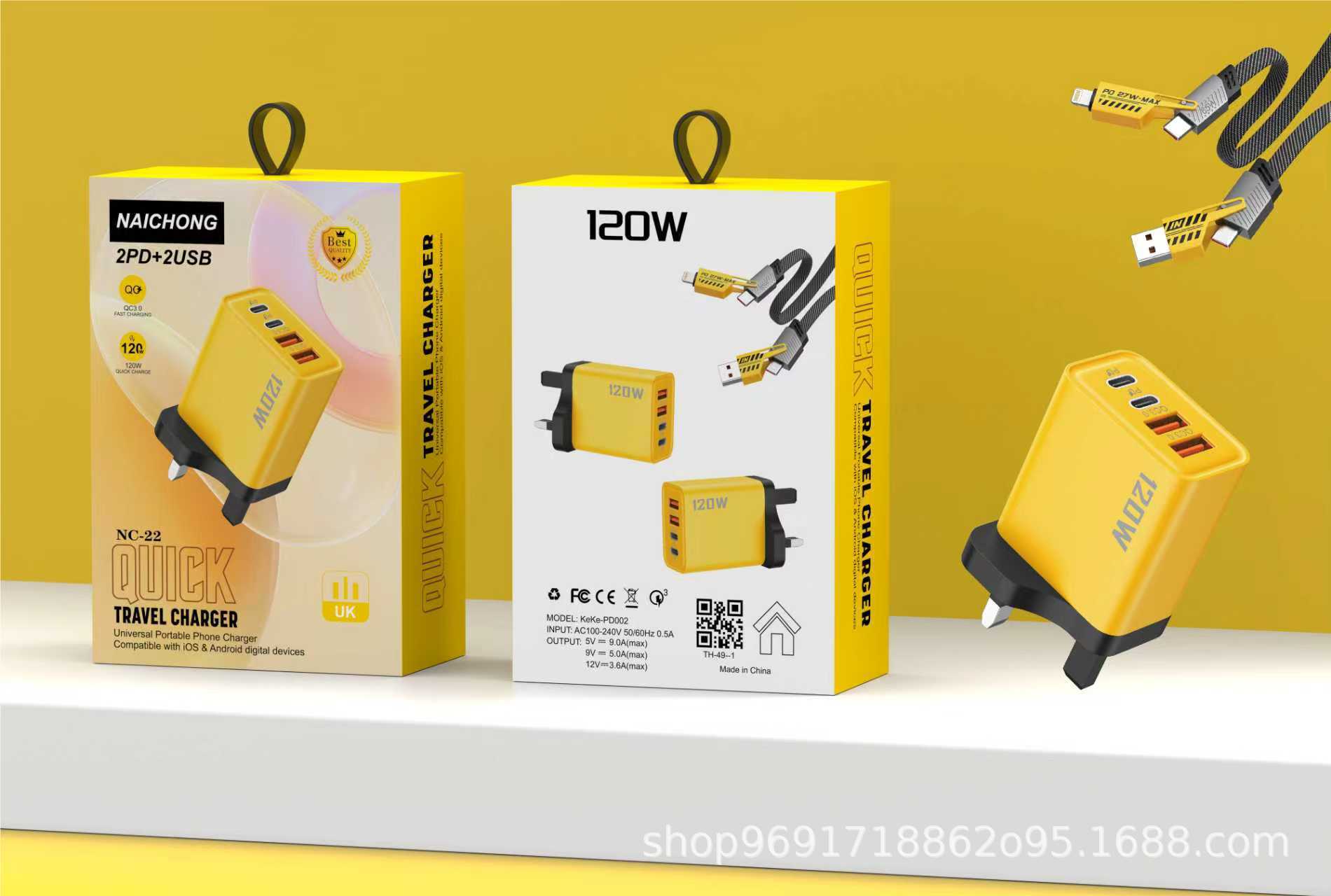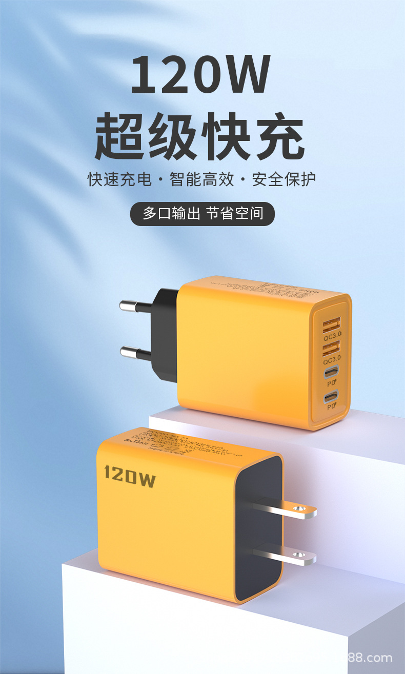Новый кросс-бордерный зарядное устройство 120W для смартфонов, быстрое зарядное устройство, многопортовое, для мобильных телефонов, двойной Type-C+
