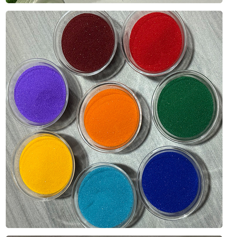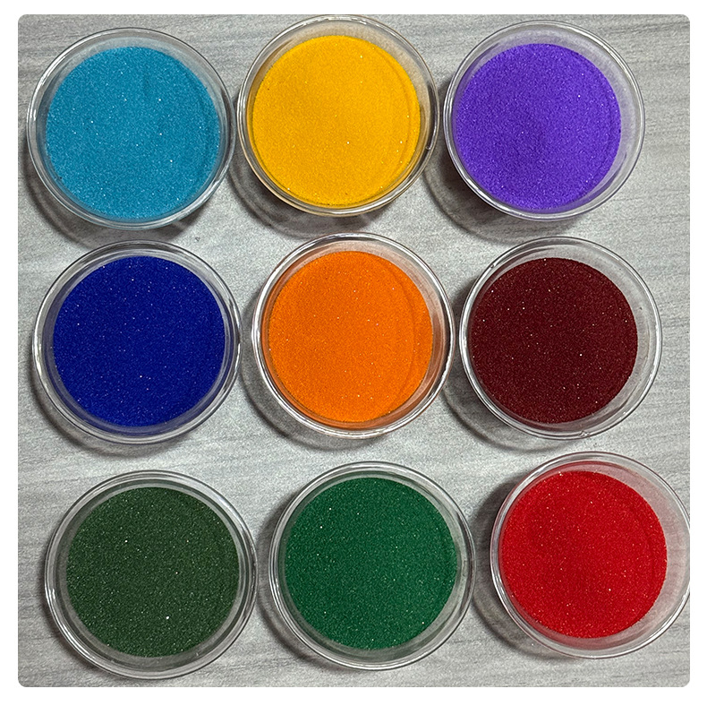 Поставки от производителя цветного песка для детских развлечений, красящий песок, песок для рисования, 80-120 меш, мелкий кварцевый песок, красящий синтерованный цветной песок