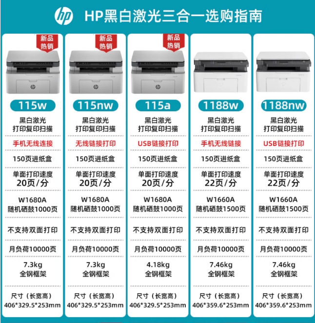 ![]() | 115nw (printing, copying, scanning, wireless wifi network) official standard configuration (cannot add powder) | ¥889.0 / ≈ 10 722 ₽ | 20 | 5889741621683 | |