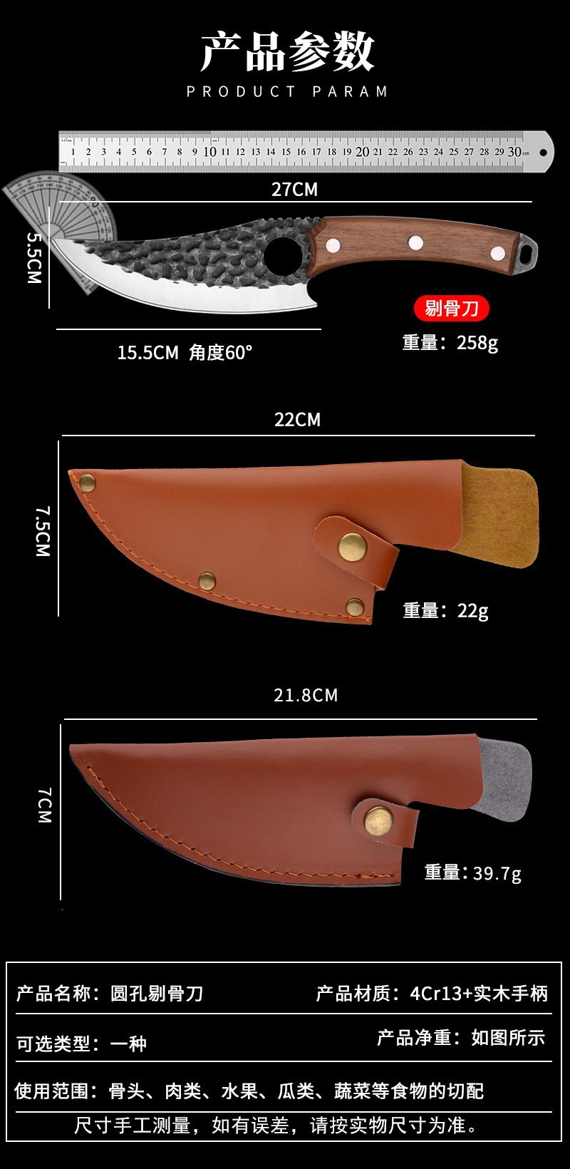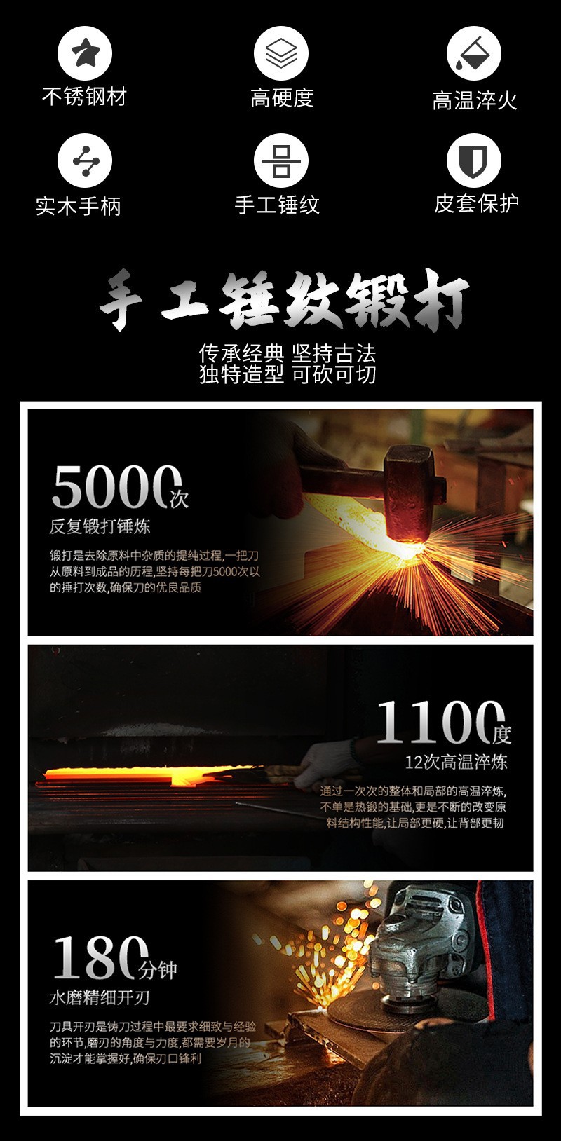 Ножи для убоя из немецкой нержавеющей стали с молоточковым рисунком, китайский стиль, кухонный нож для дома, для разделки костей и мяса