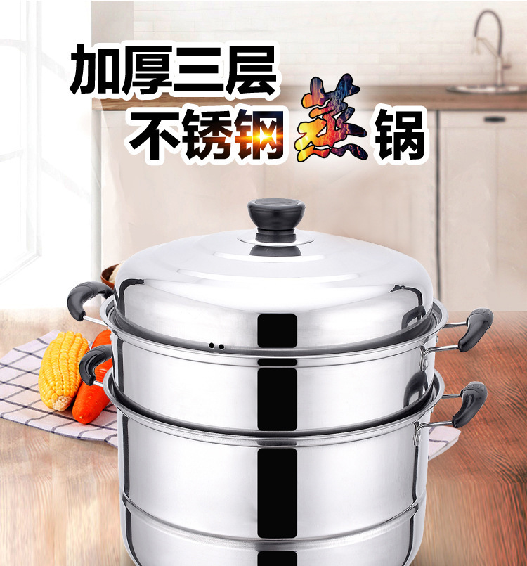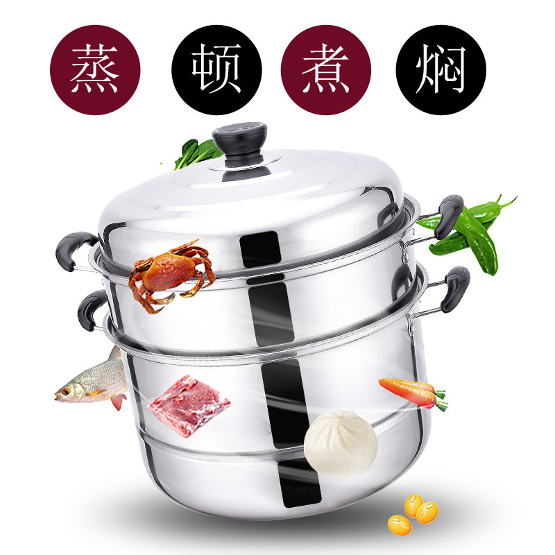 Утолщённая пароварка из нержавеющей стали, двухслойная, для дома, большая суповая кастрюля, для приготовления рыбы, для индукционной плиты и газовой плиты