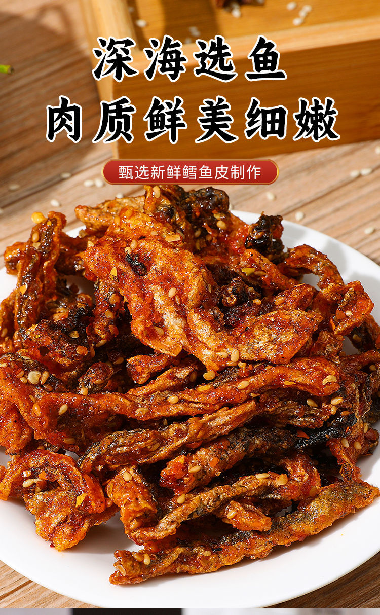 Готовый к употреблению медово-острый кожура трески крупная упаковка острые рыбные чипсы сушеная медово-острая кожура трески морепродукты закуски