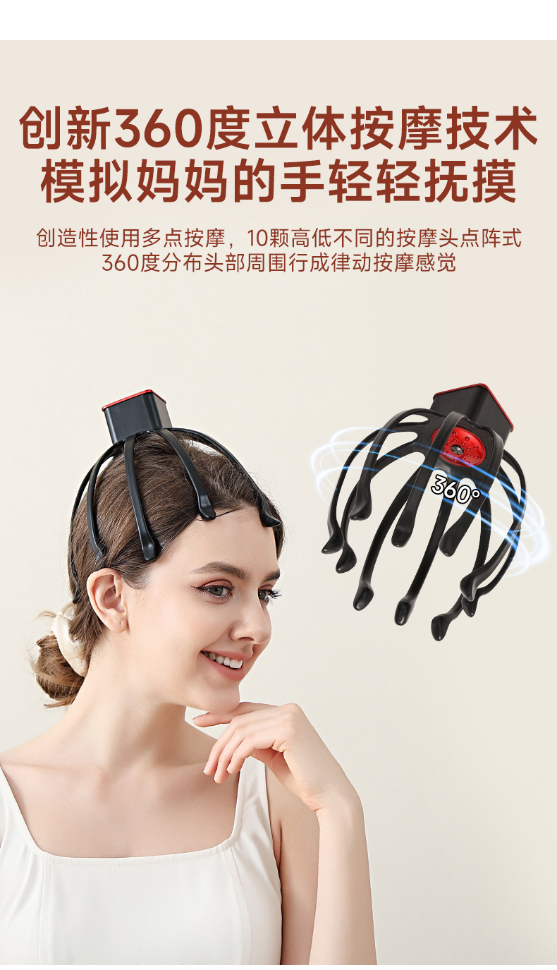 Вибрационный массажер для головы, дренаж и расслабление кожи головы для улучшения сна, полностью автоматический многомерный электрический массажер осьминог