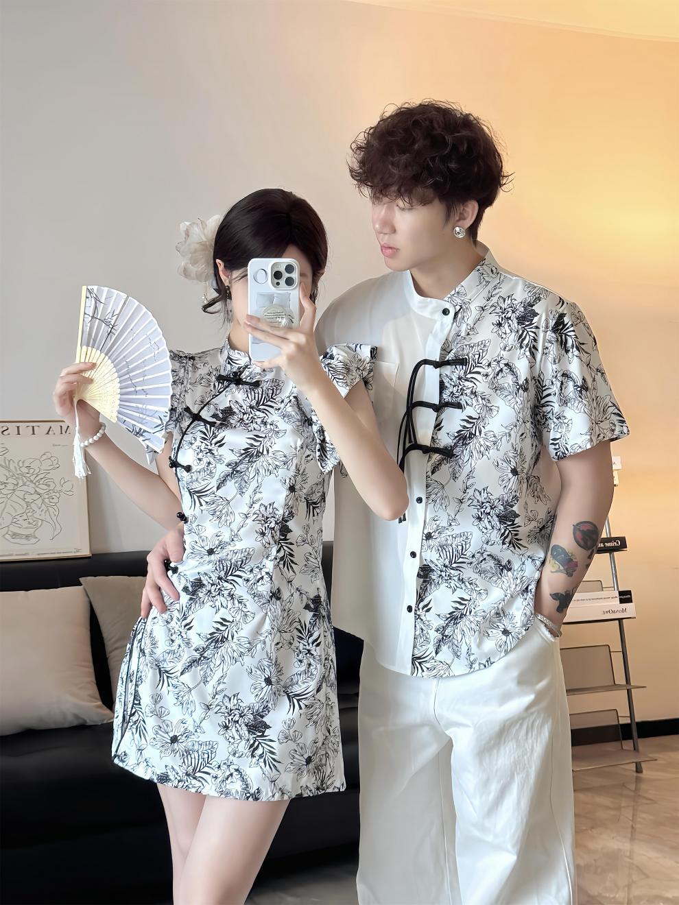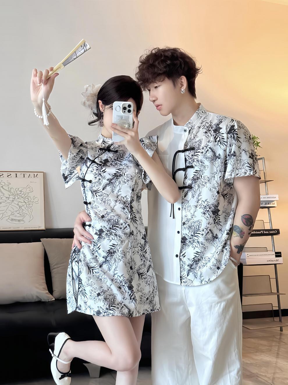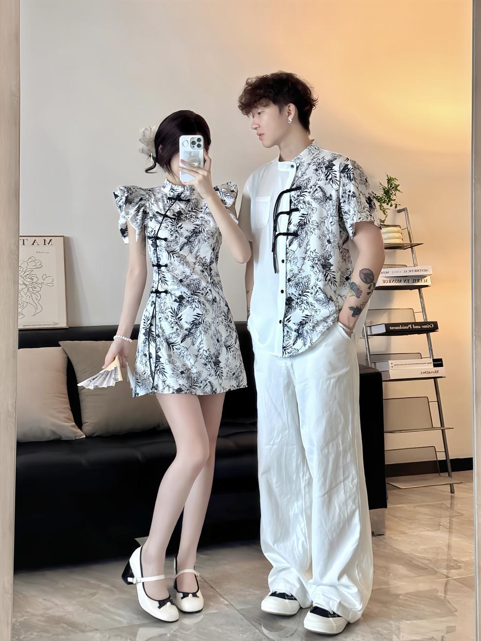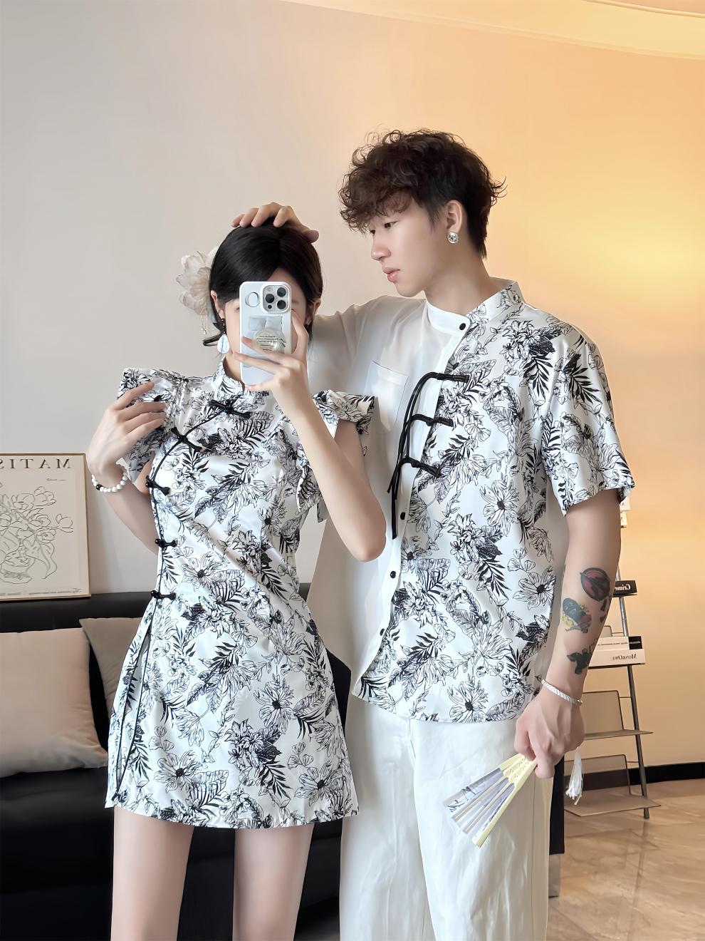 2025 новый летний комплект для пар, короткий рукав, китайский стиль, улучшенный женский двухпредметный набор