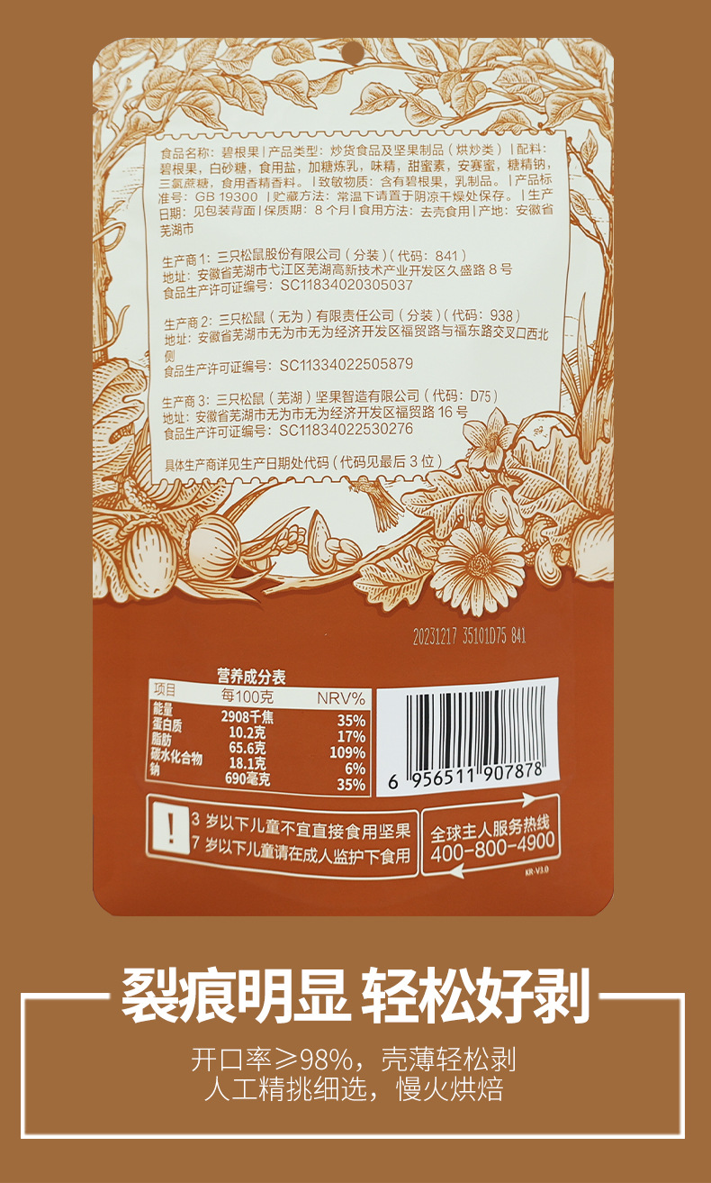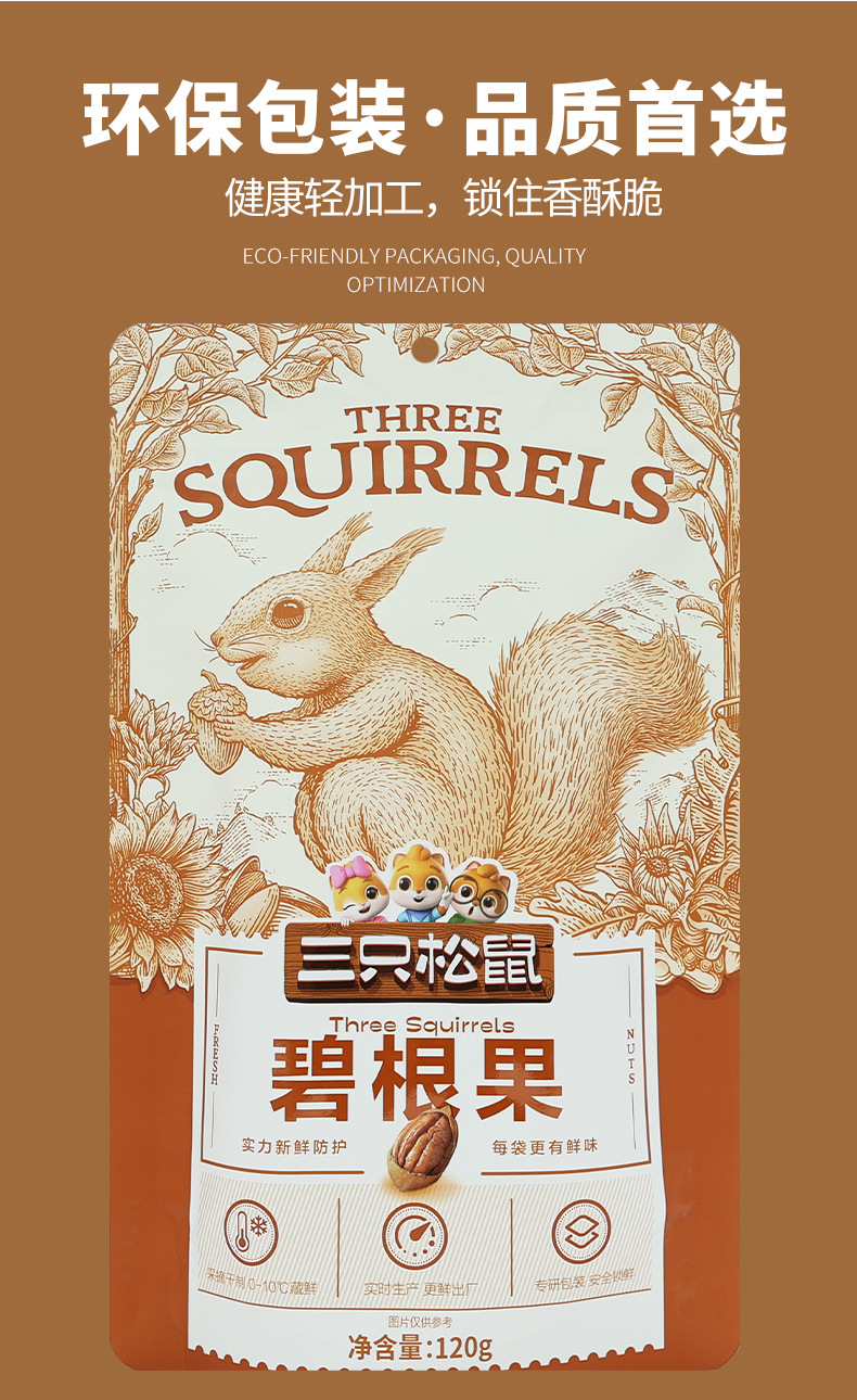 Орехи пекан Three Squirrels 120Г/упак. Сухофрукты, питательный кремовый орех, закуска, бесплатная доставка