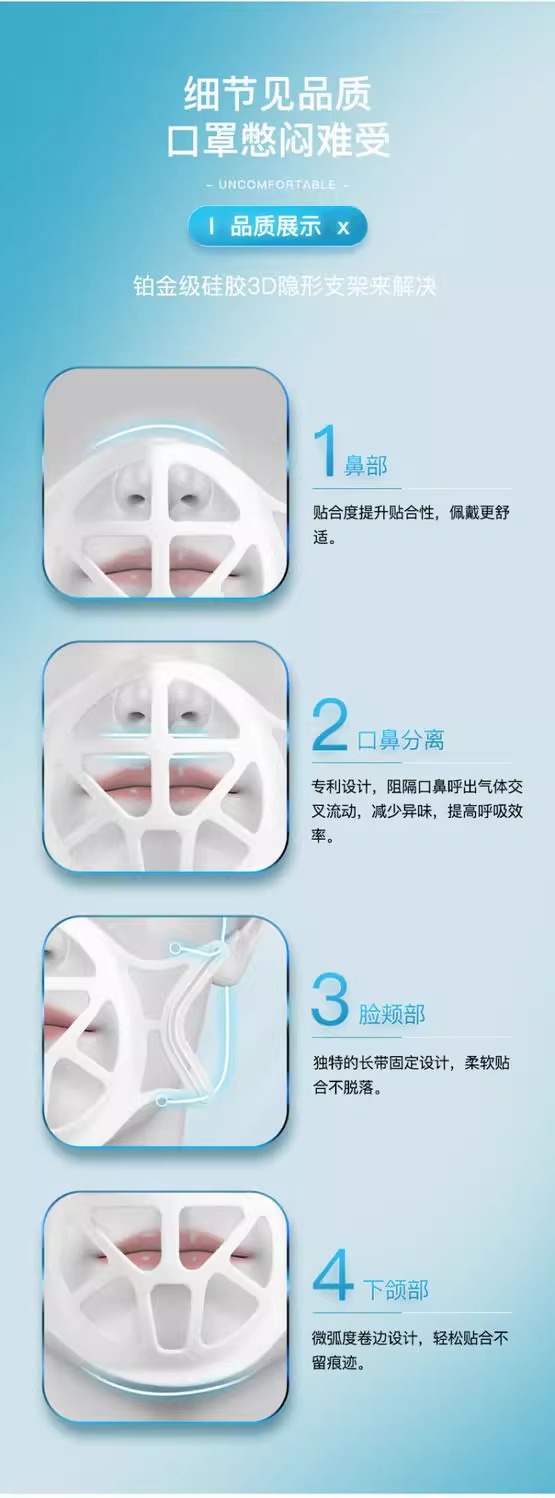 Новая инновационная 3D трехмерная маска-держатель из силикона против запотевания, макияжа, заложенности и перегрева для дома