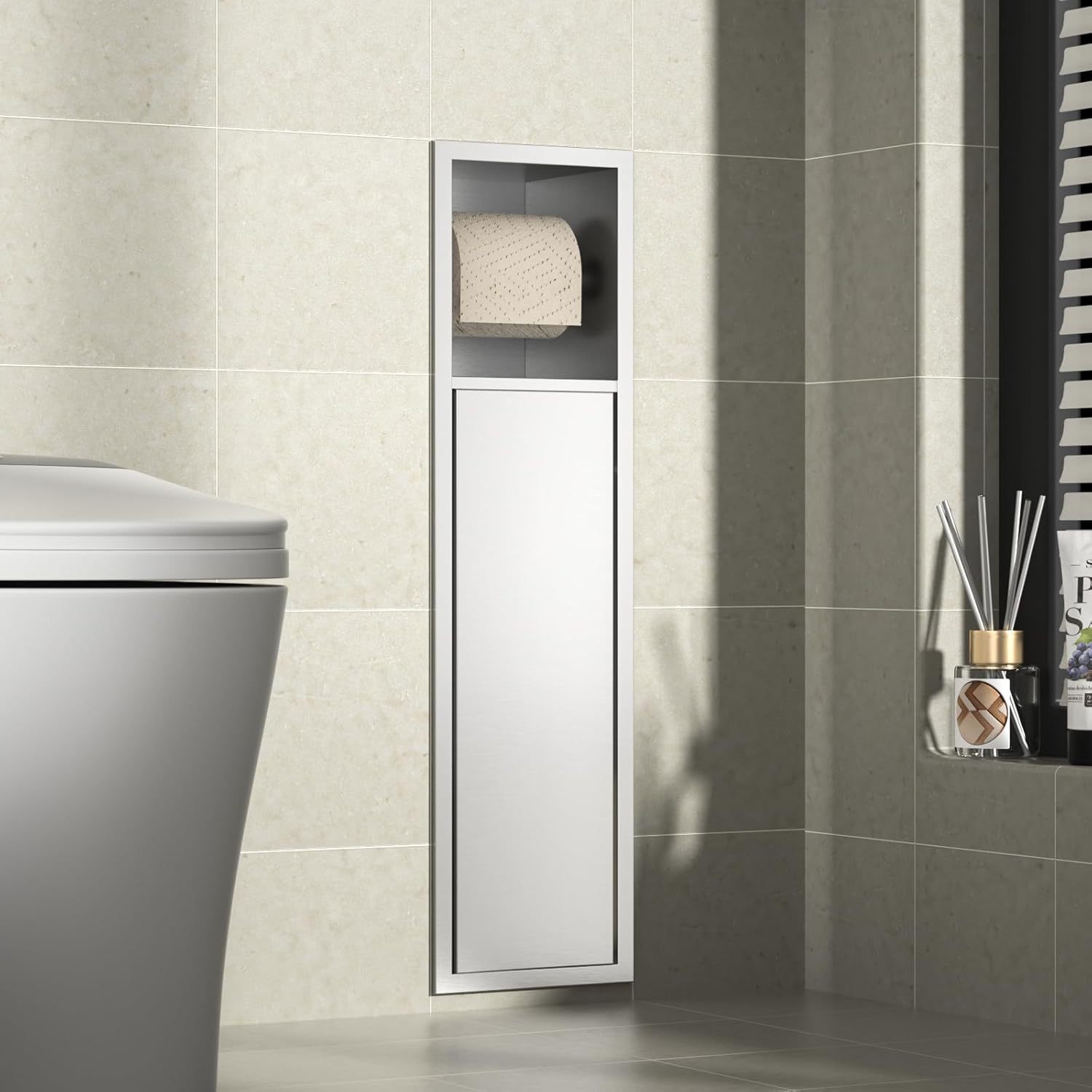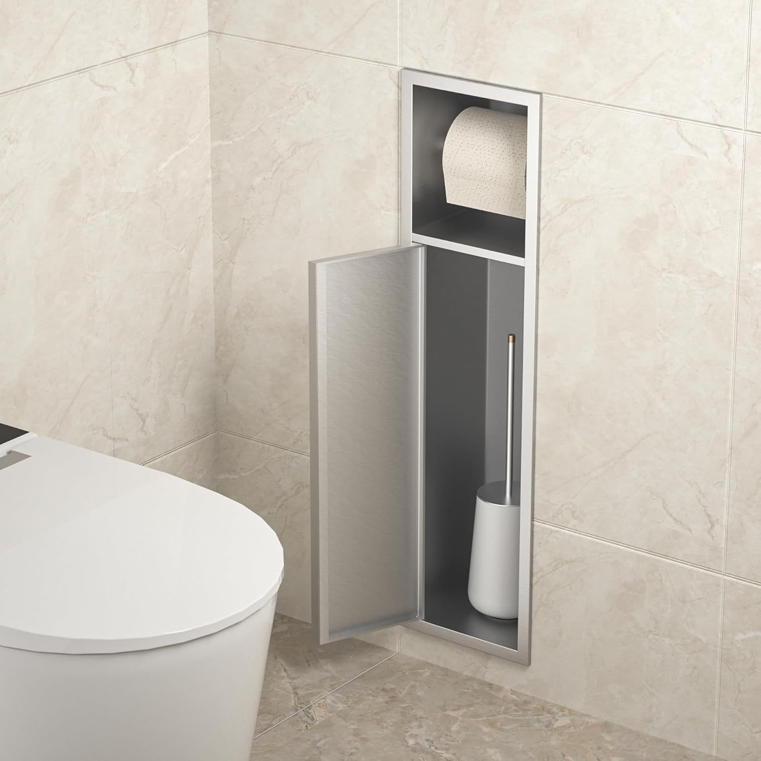 Кросс-бордерный шкаф для туалета из нержавеющей стали, металлический шкаф для хранения, держатель для бумаги, щетка для унитаза, нишевая полка, минималистичный стиль