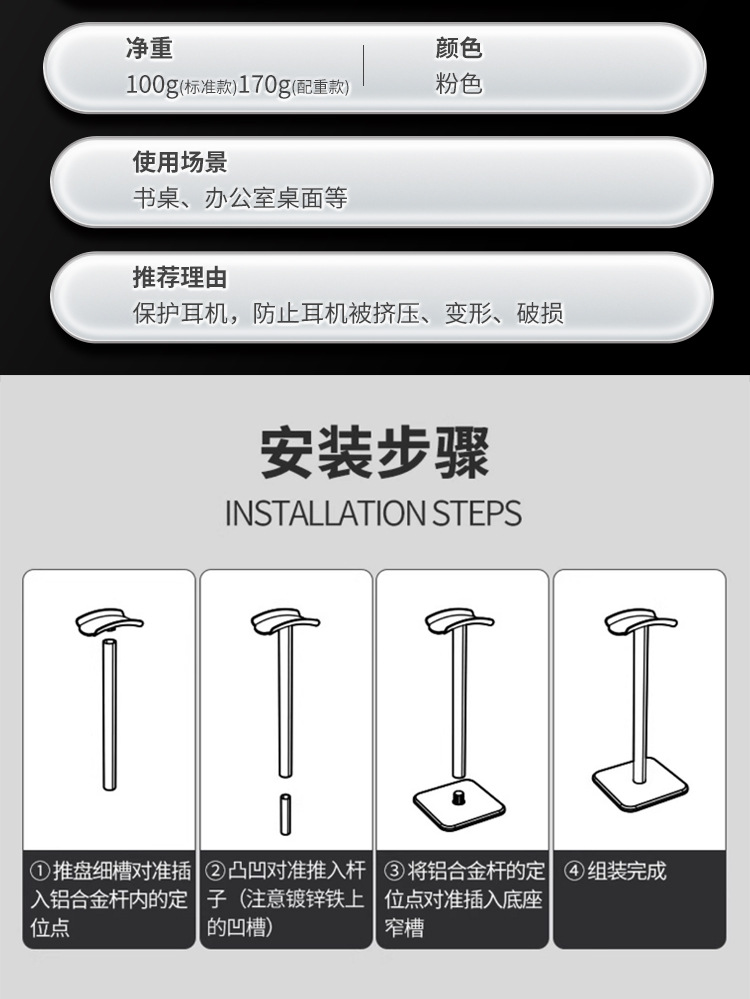 Подставка для наушников для компьютера, настольная подставка для игровых наушников, алюминиевый сплав, дисплей для гарнитуры, металлическое хранение