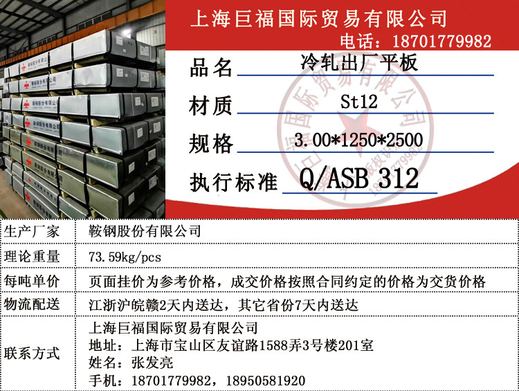 Заводская плоская холоднокатаная плита Sanyang - плита St12 холоднокатаная - толщина 3.0мм * 1250 * 2500