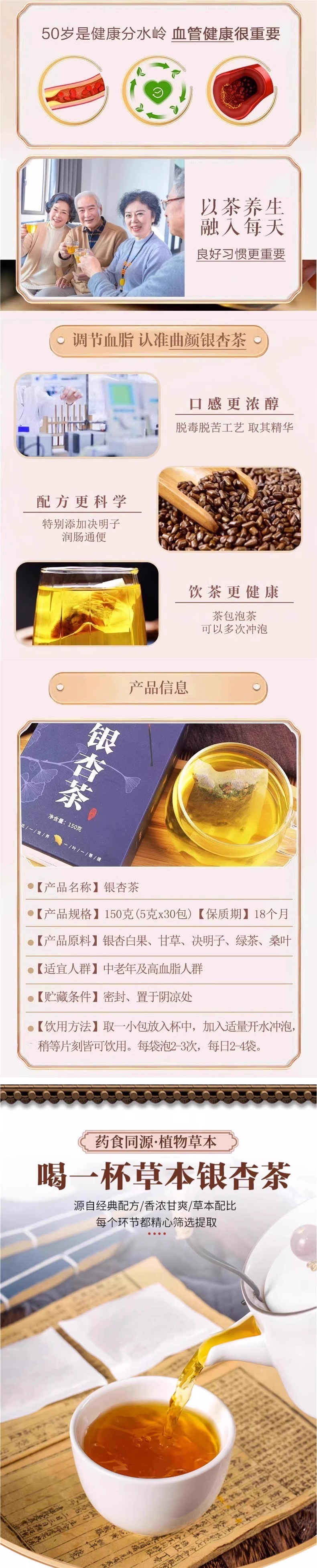 Чай из листьев гинкго, сыворотка для очистки, травяной чай из кукурузных рылец и листьев тутовника для среднего и пожилого возраста