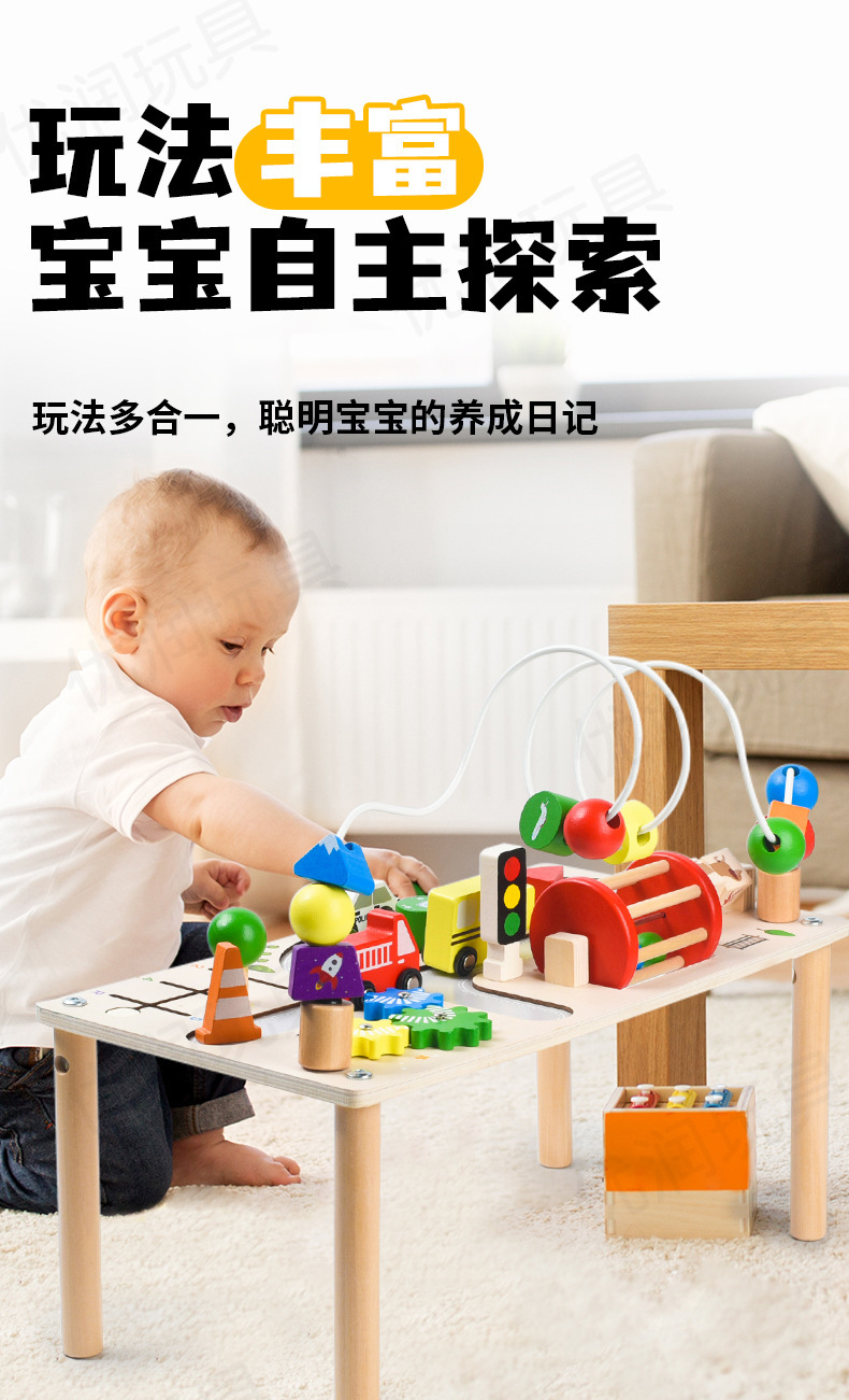 Деревянный многофункциональныйBusy Table для детей Образовательный игрушечный железнодорожный трек Развивающая игрушка Настольная Busy Board