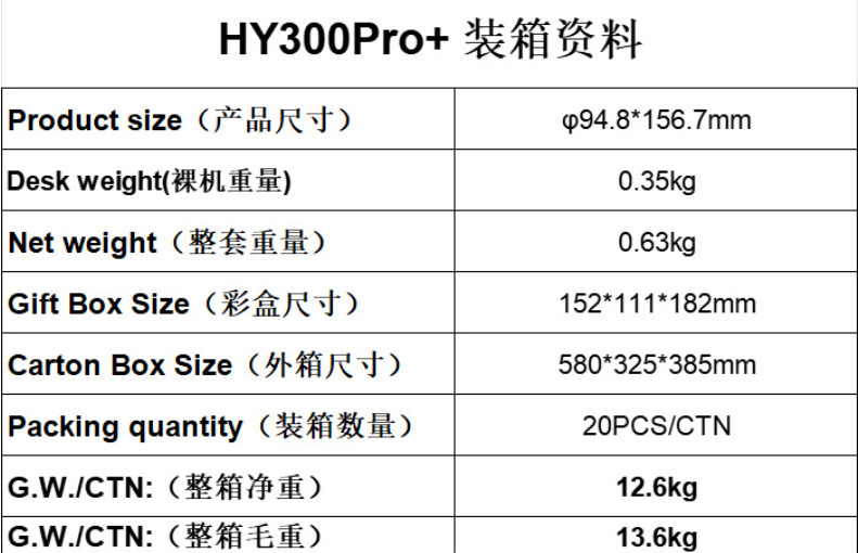Код продукта Hy300pro+