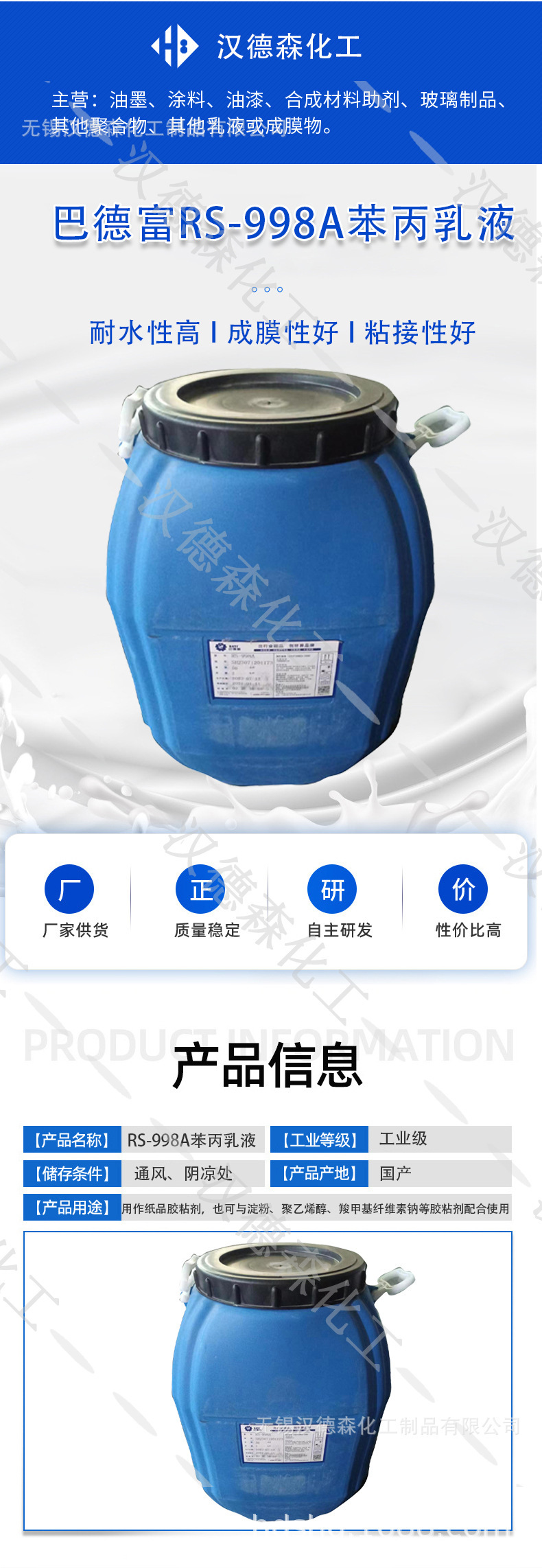 Baderfu Rs998A, стирол-акриловая эмульсия, латексная краска для внутренних и внешних стен