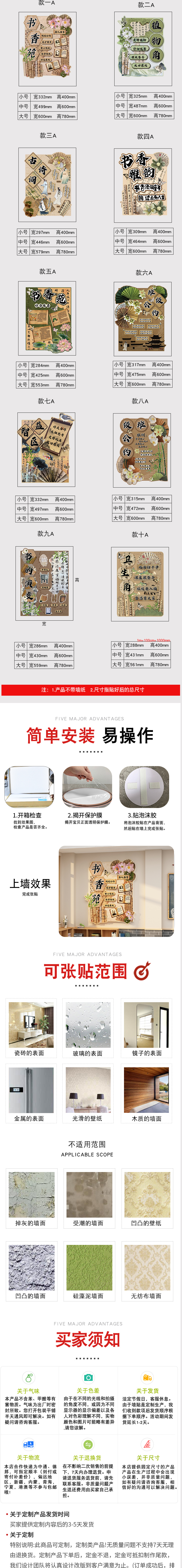 Стикеры для стен в классе в древнекитайском стиле, декор угла книги, зона чтения, тема фестиваля ароматов