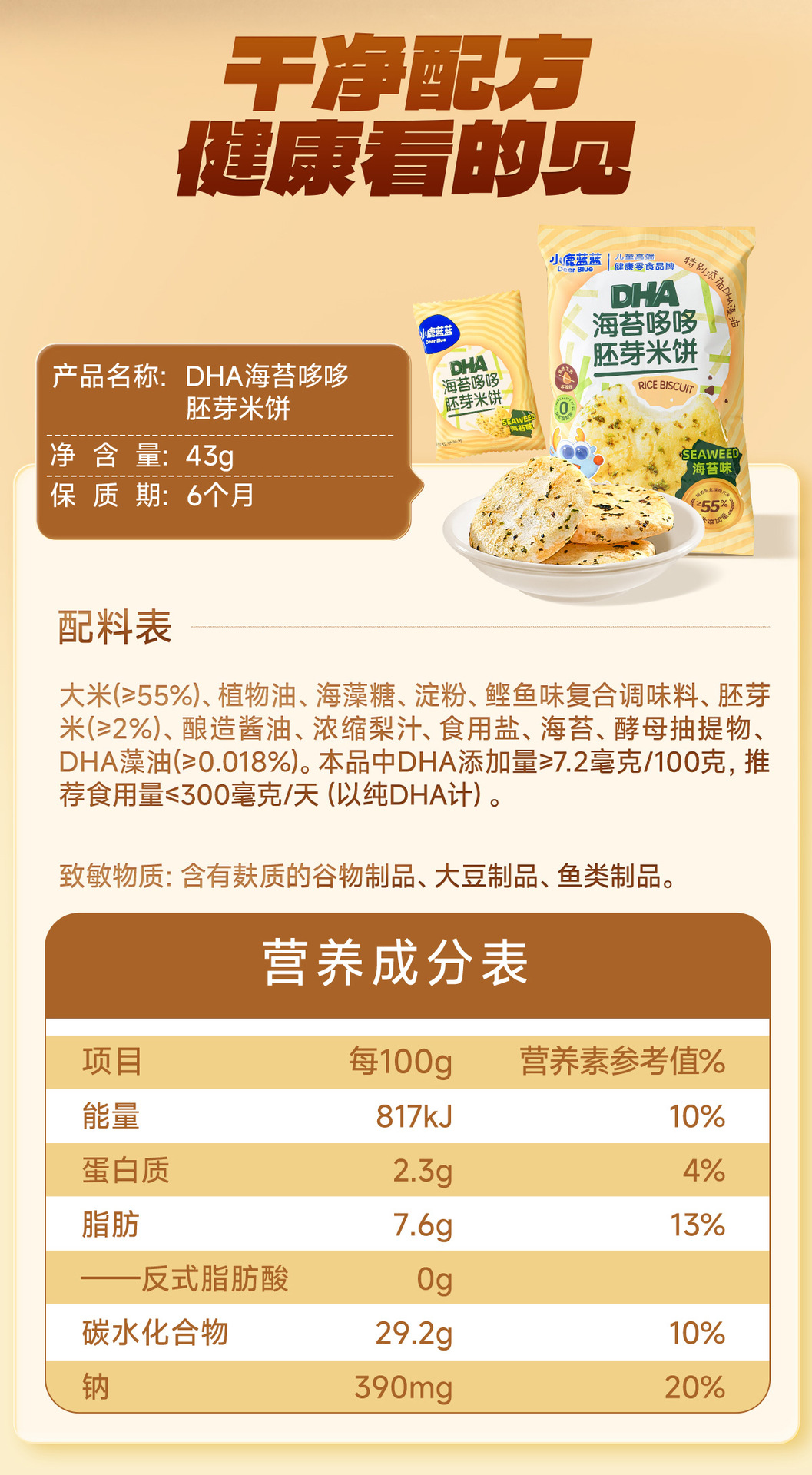 📦 | Dha seaweed duoduo germ rice cake/43g | 1шт: ¥9.90, 15шт: ¥6.50, 30шт: ¥5.50 | 964 | 5971095487512 |