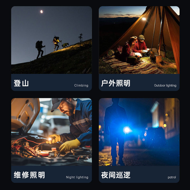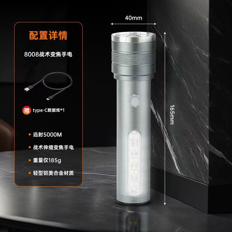 Внешняя торговля многофункциональным фонарем из алюминиевого сплава с боковыми огнями, литиевый аккумулятор, зарядка USB-Type-C