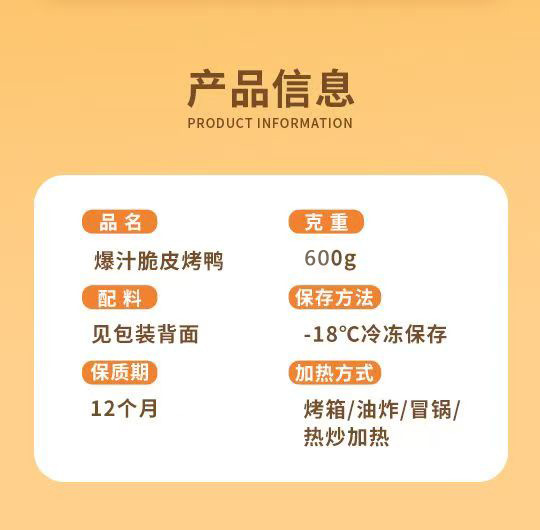 ![]() | Cantonese roast duck/bag | ¥29.0 / ≈ 350 ₽ | 89888 | 5927630981158 |