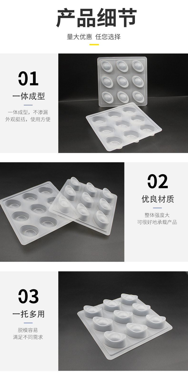 Форма для рисового пирога в виде золотого слитка PP, 9 крупных форм для желе, шоколада, блистерная форма