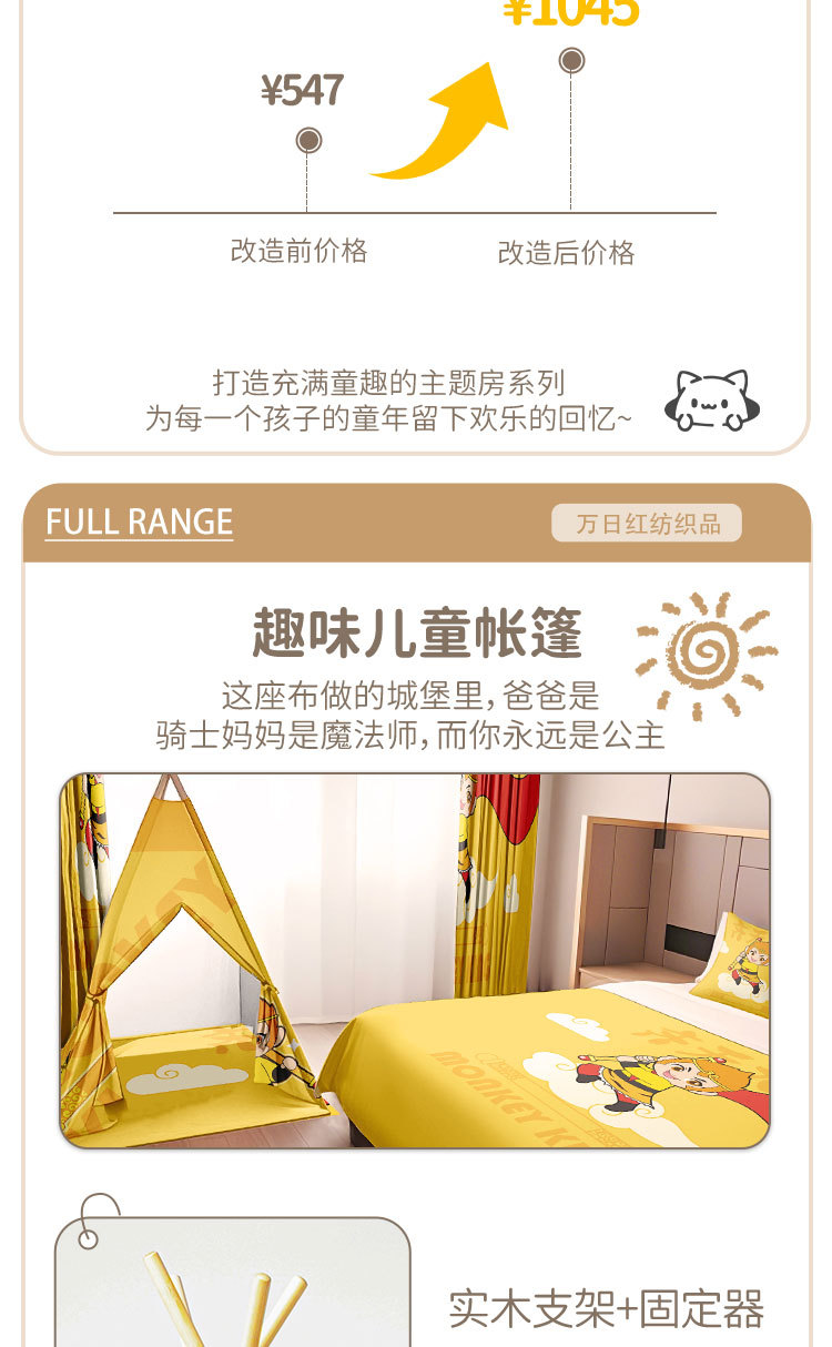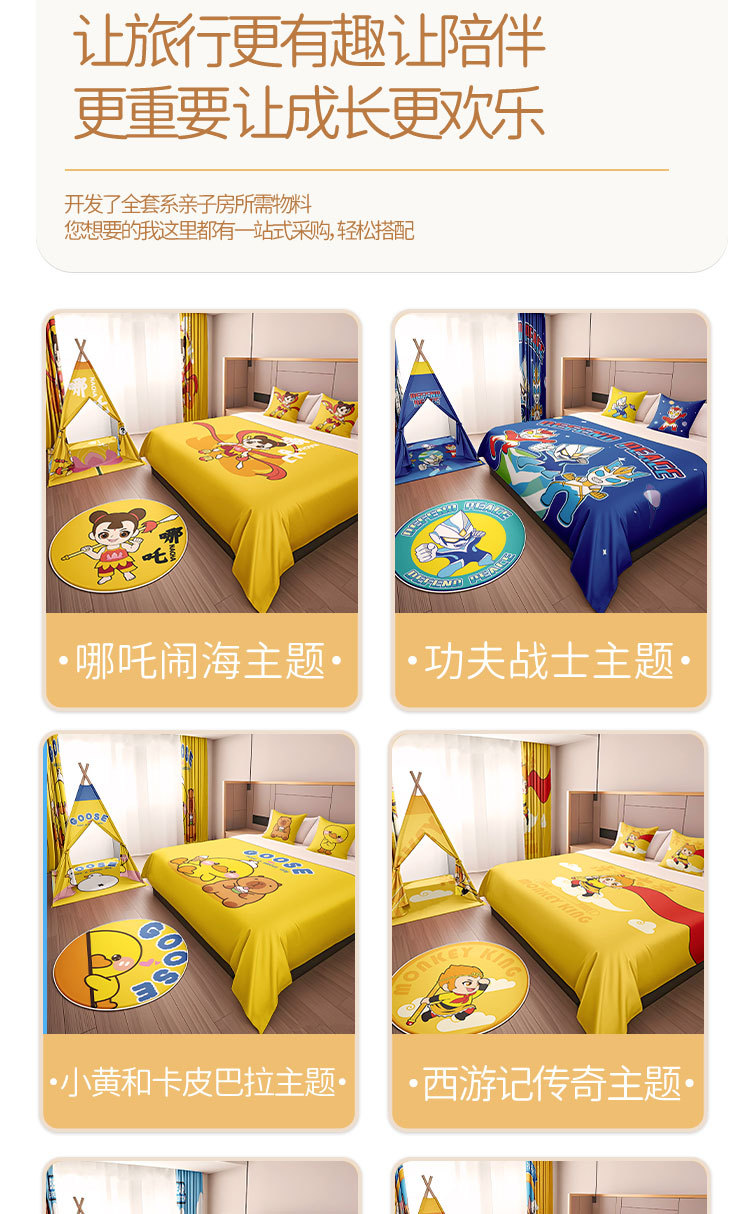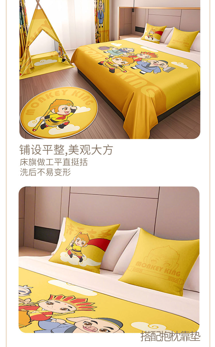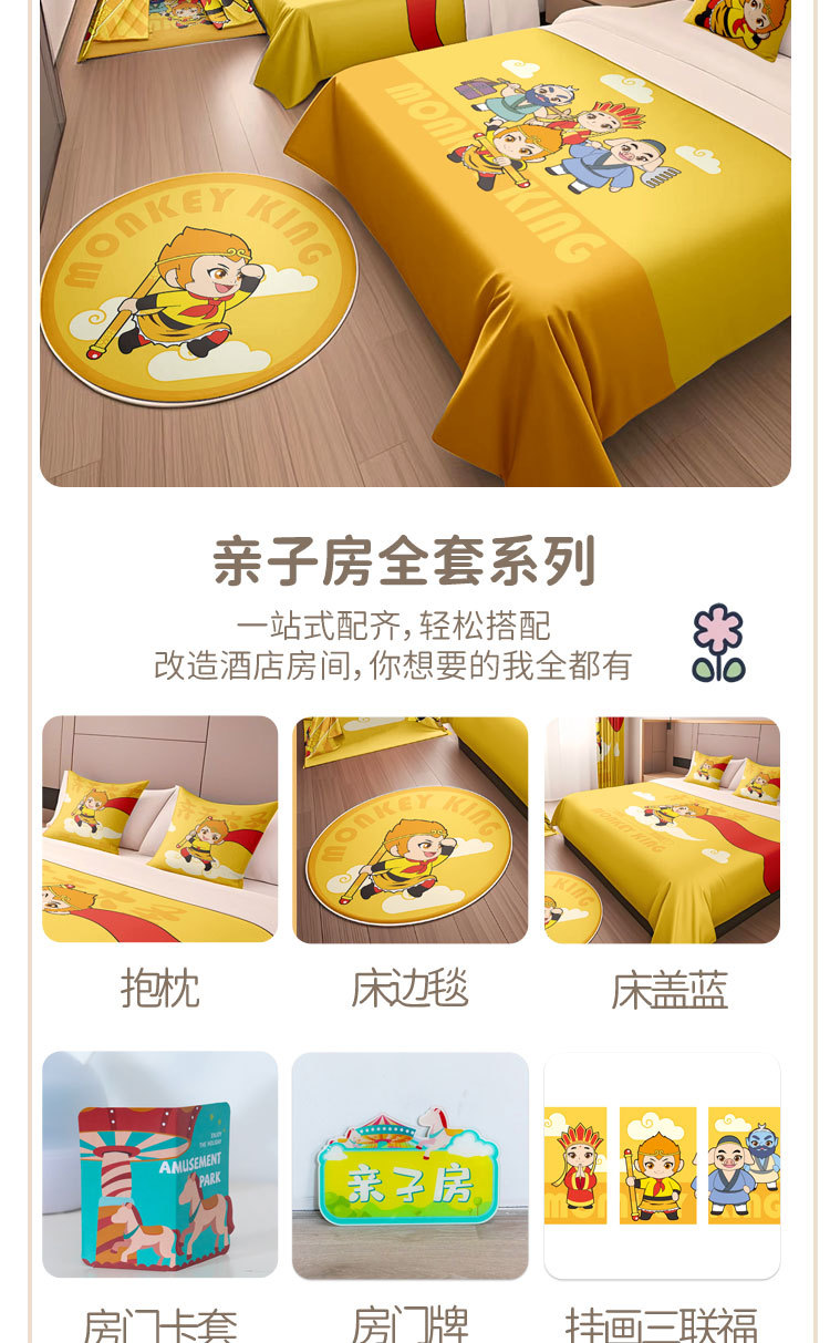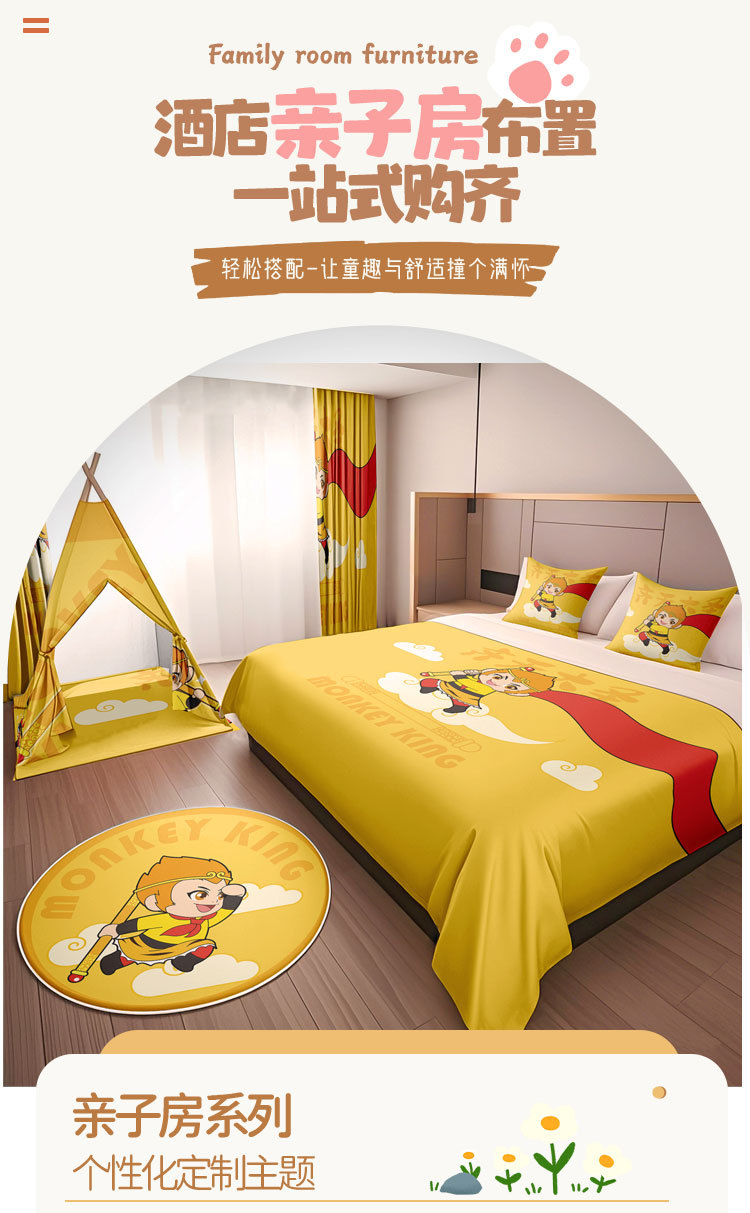 Декорация семейного номера в гостинице с изображением Сунь Укуна и мультфильма "Путешествие на Запад", покрывало, подушка, декор палатки и ремонт номера в стиле хостела