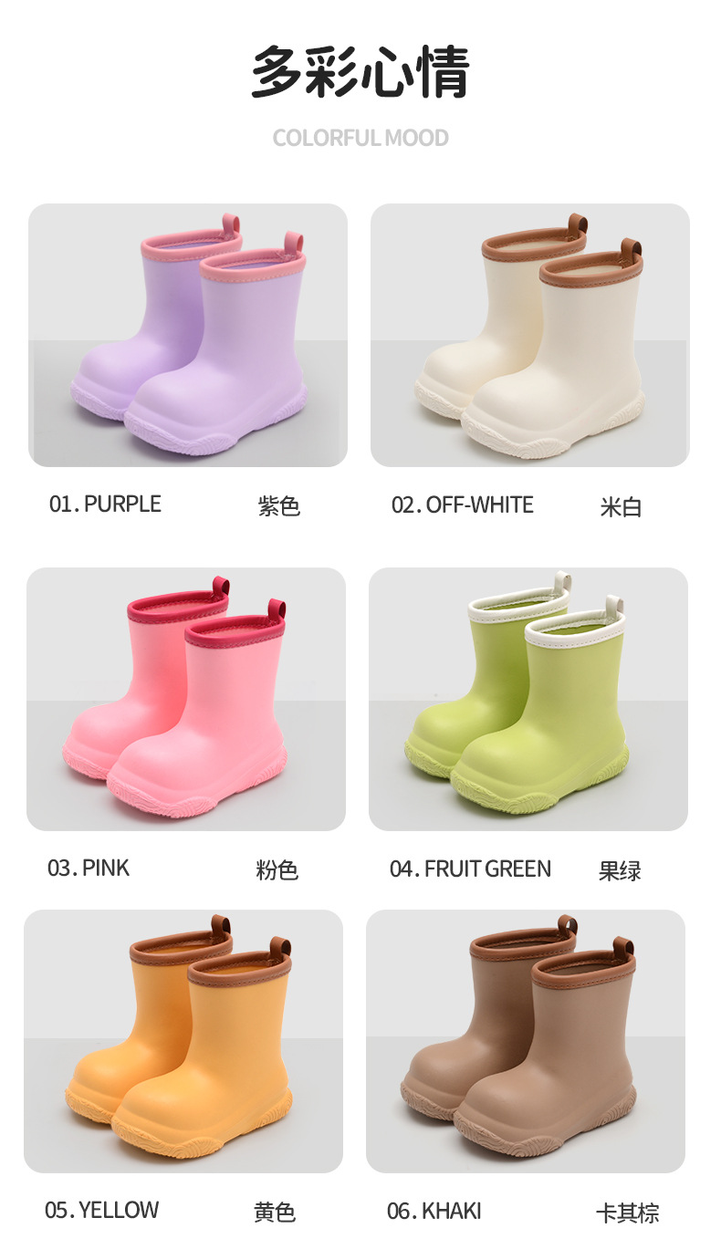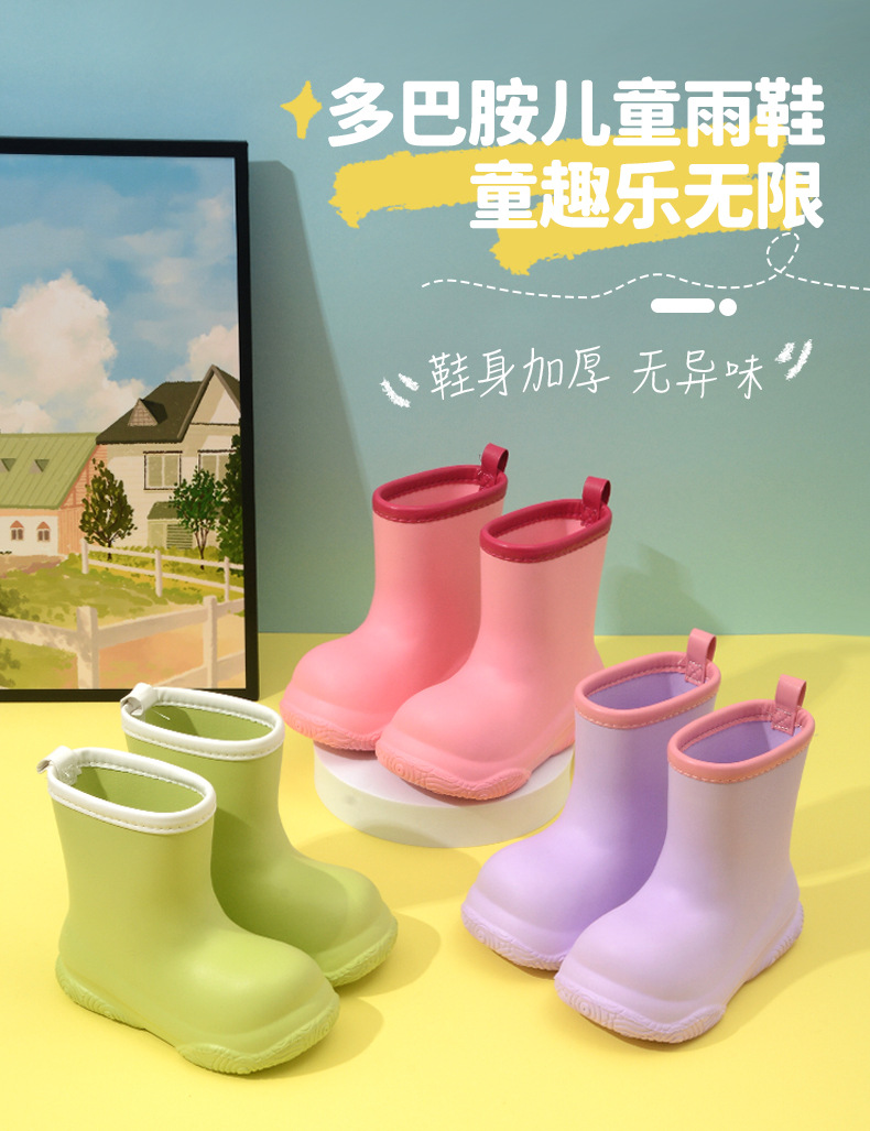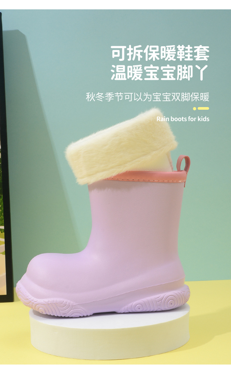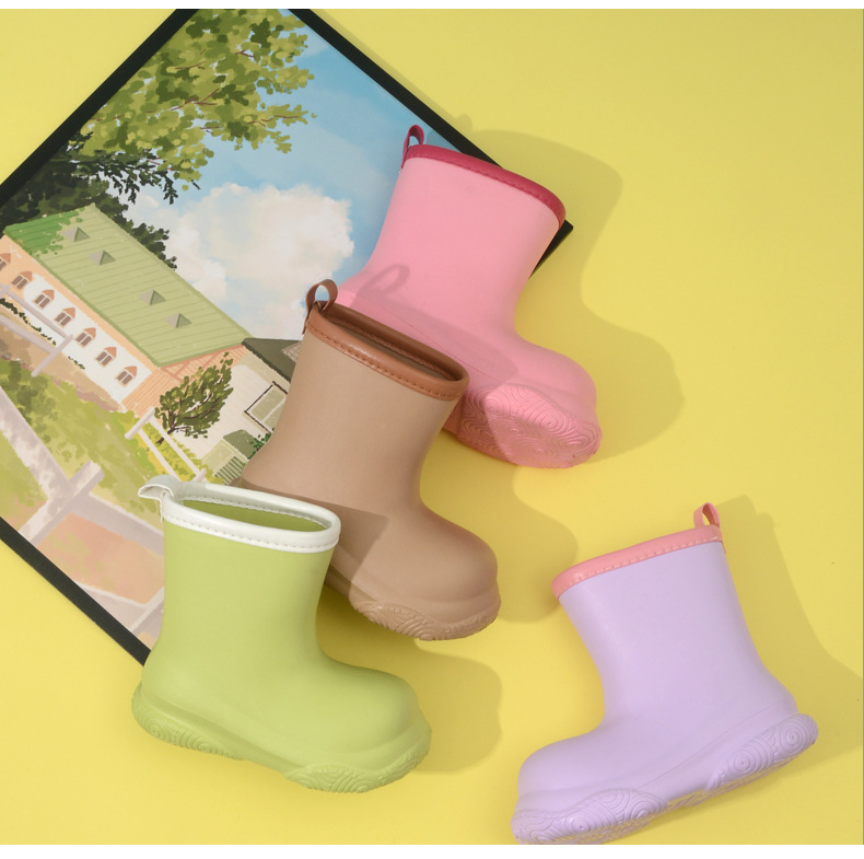 Дождевики для детей маленького и среднего размера, однотонные сапоги из ЭВА, водонепроницаемые, нескользящие, мягкая подошва, теплые дождевики до середины икры из хлопка