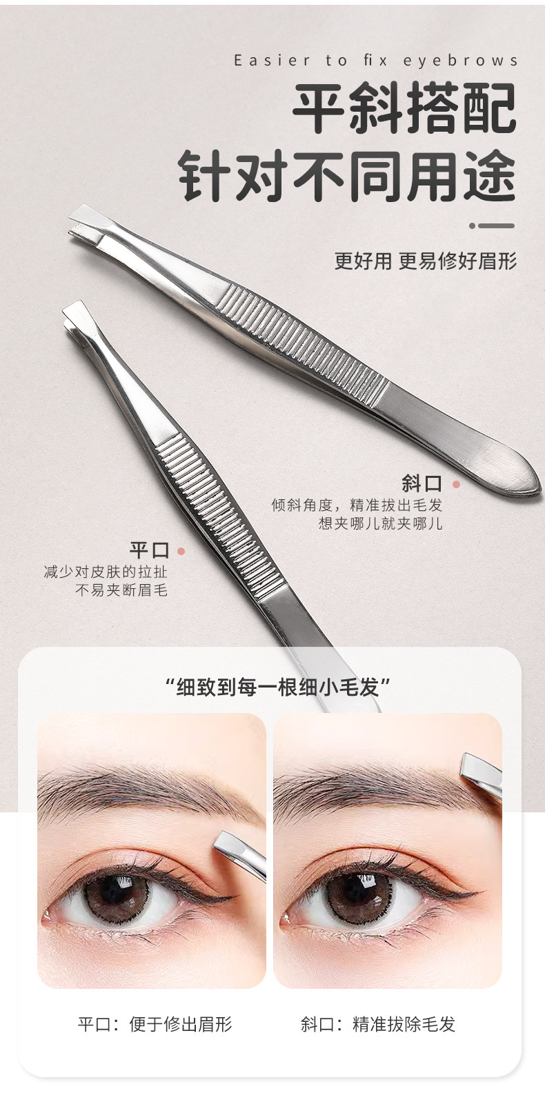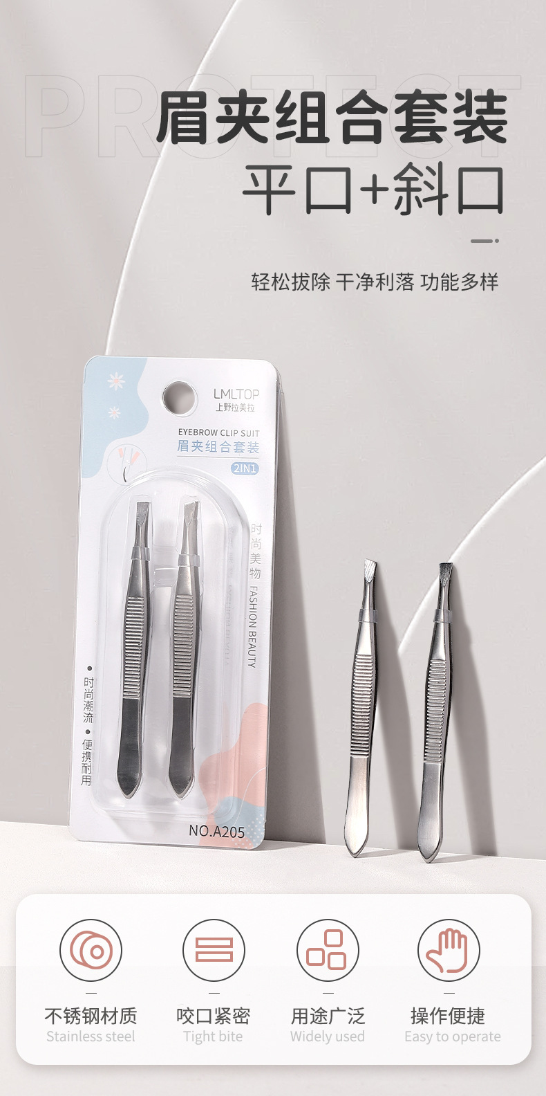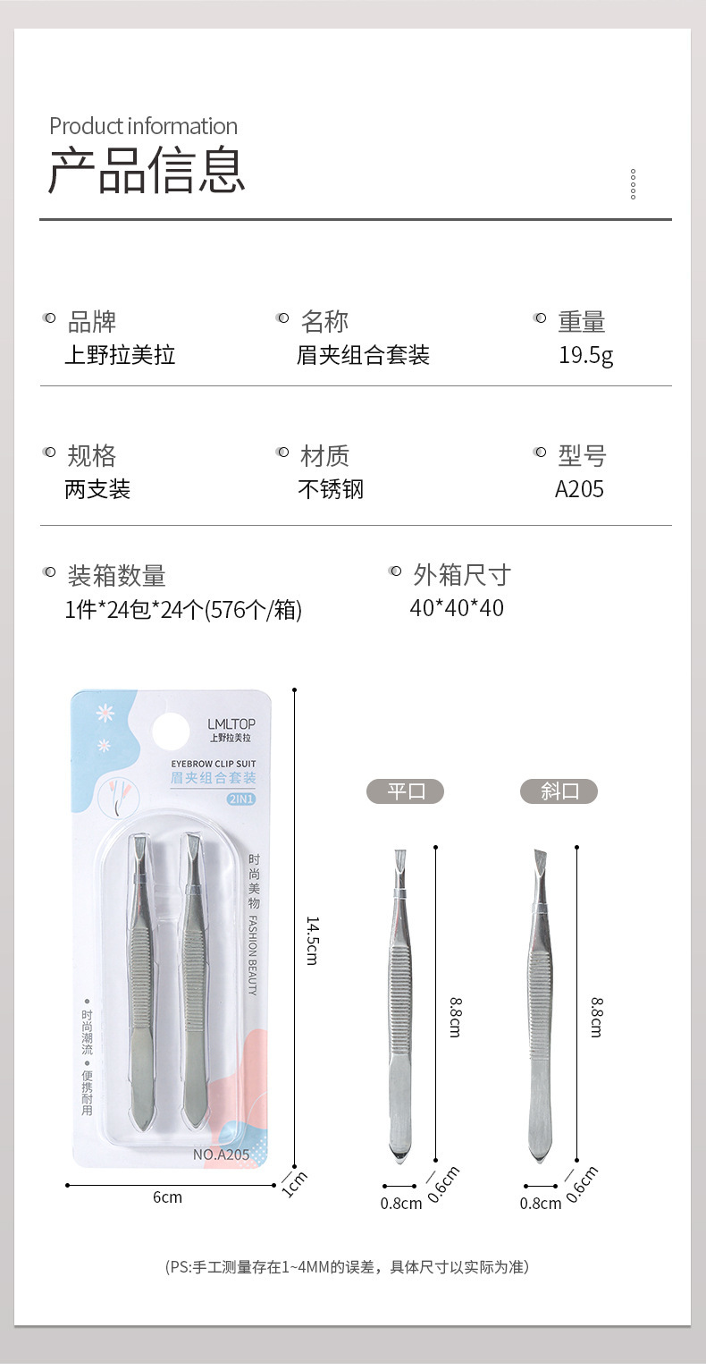 Набор из 2-х наклонных серебряных щипцов для бровей Lmltop, из нержавеющей стали A205