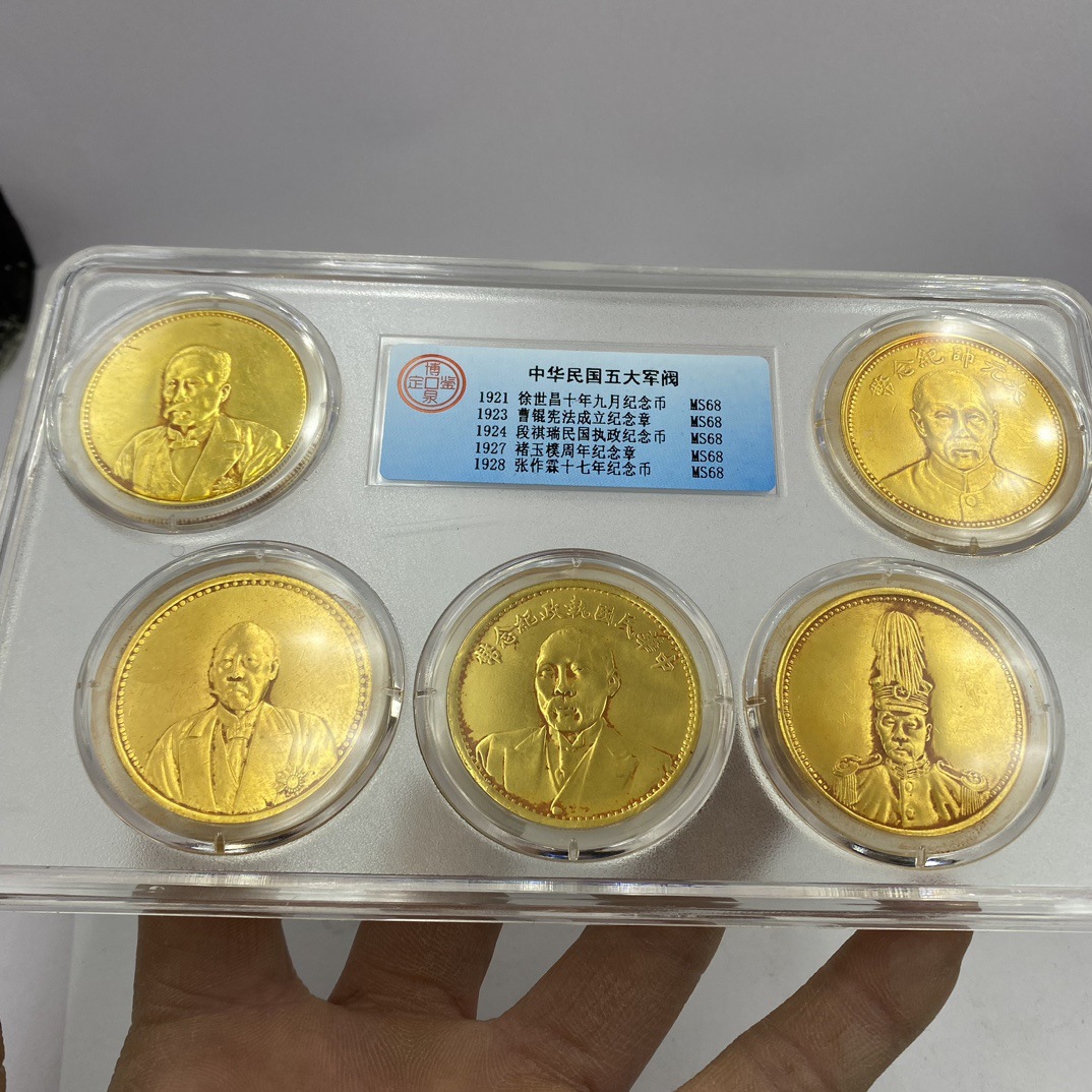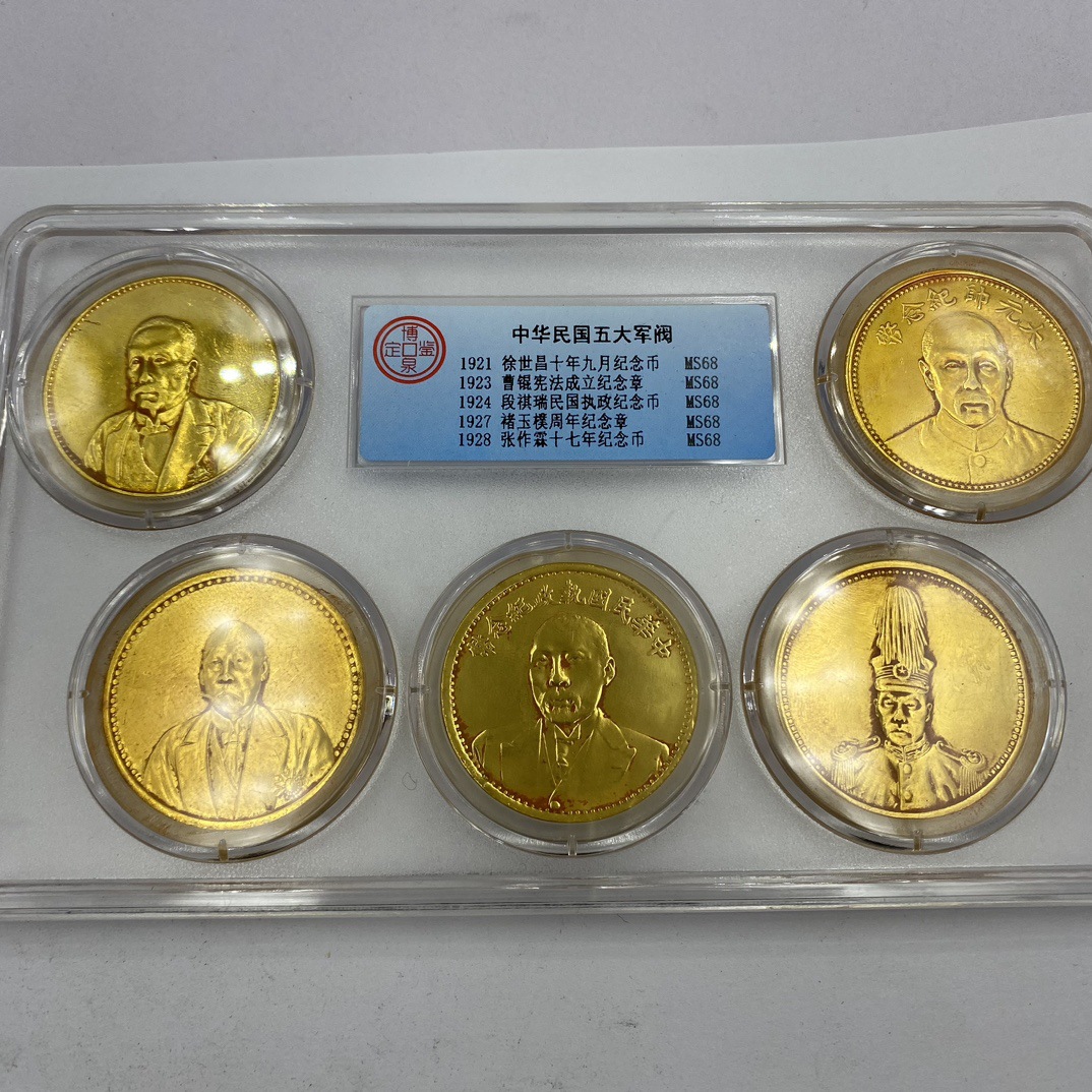 Антикварные древние монеты, серебряные монеты, золотые монеты Республики Китай, пять военачальников, пять штук, набор золотых монет, коллекция памятных монет, полный комплект