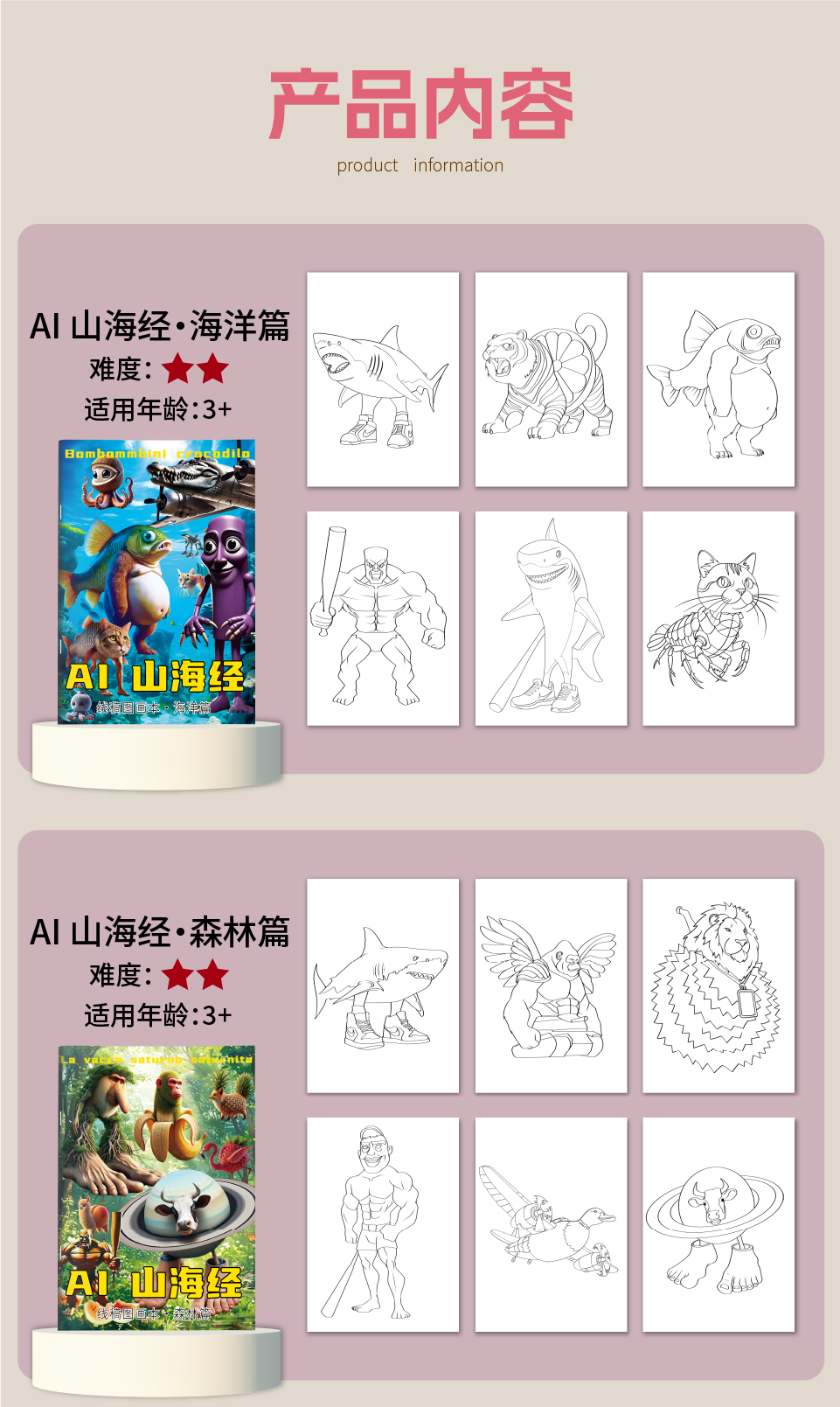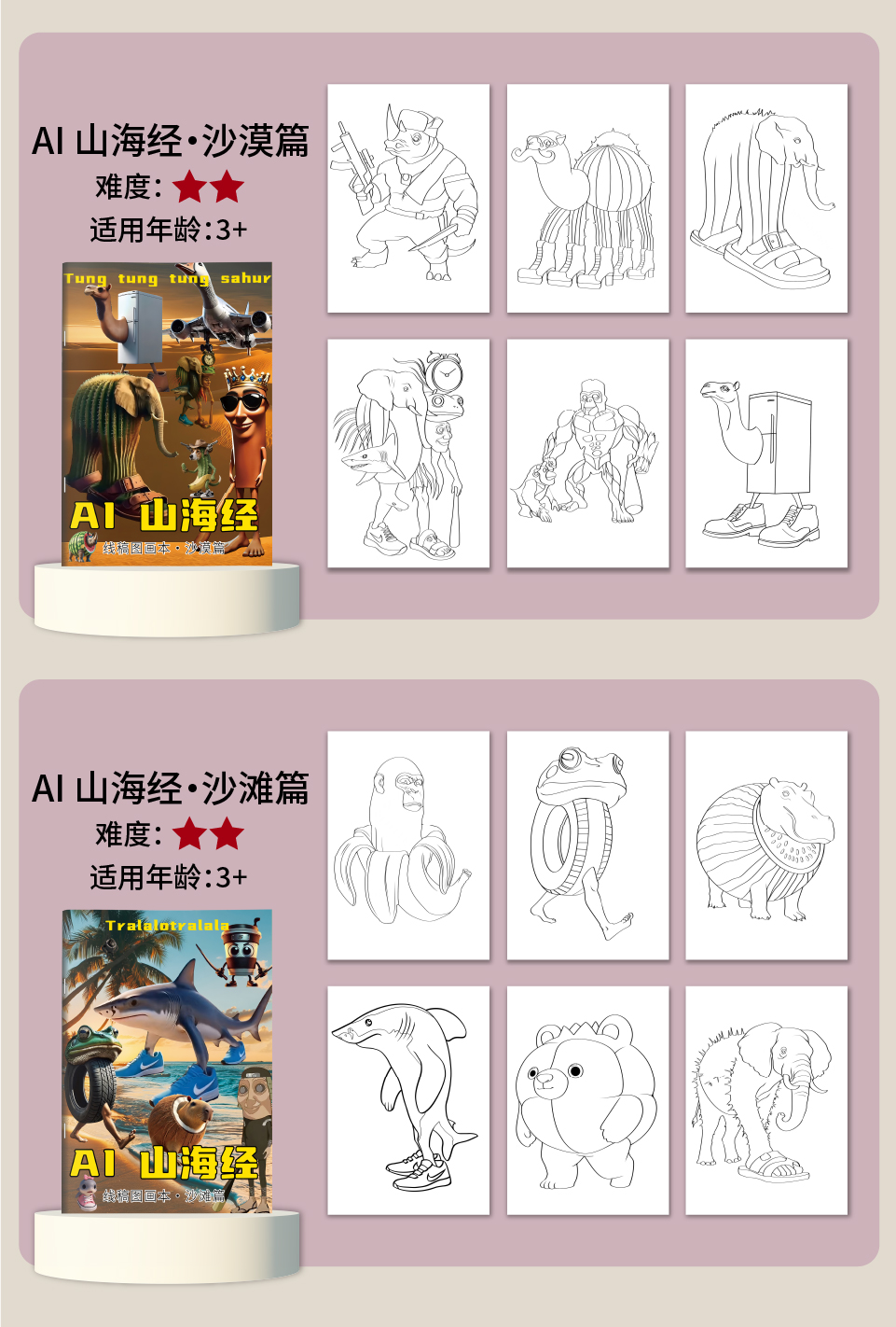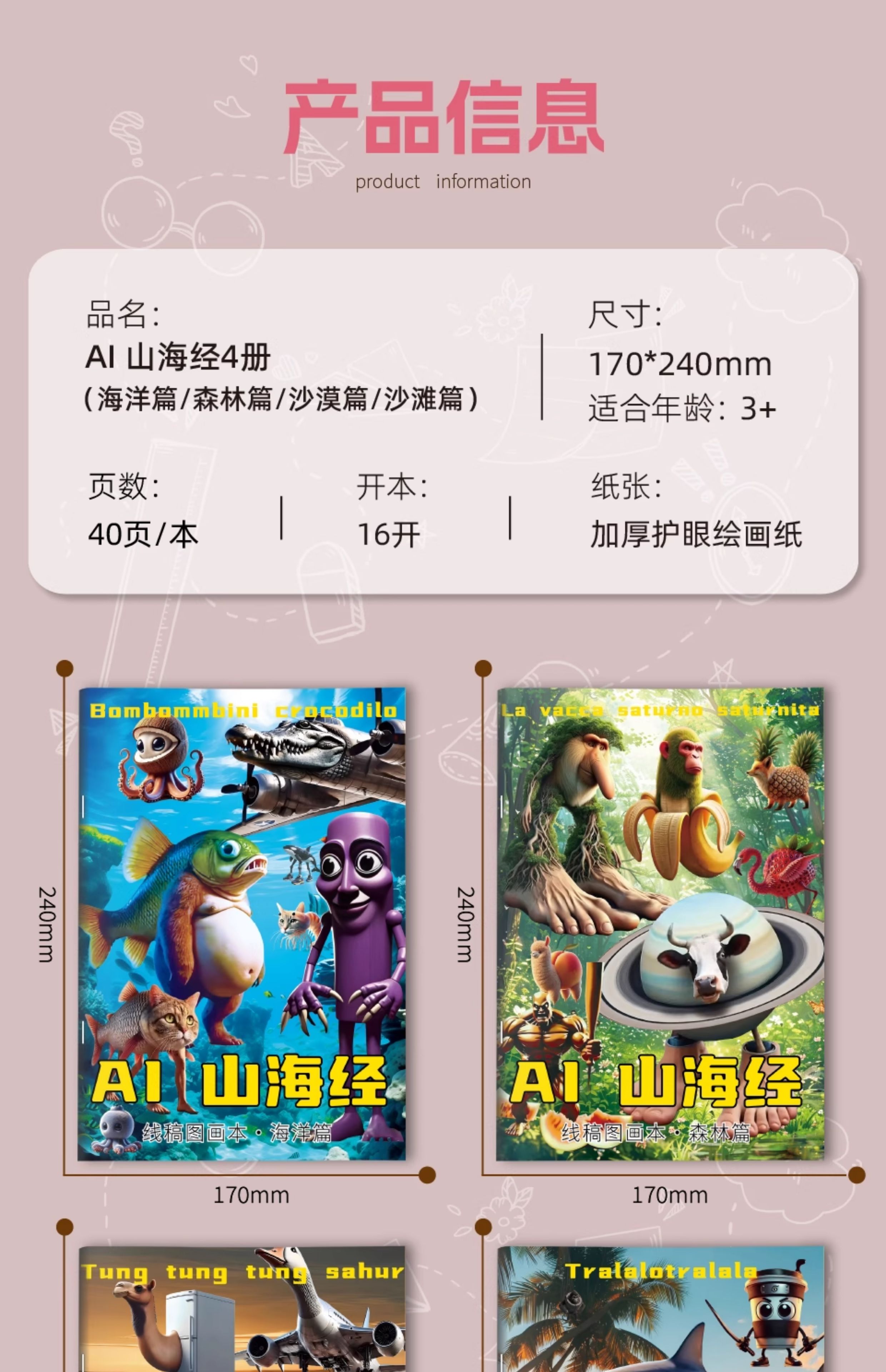 Книга для обводки Шань Хай Цзин Тунгтунгсахур Деревянный человечек Линейная рисовка Книга для раскрашивания Образовательный doodle для детей