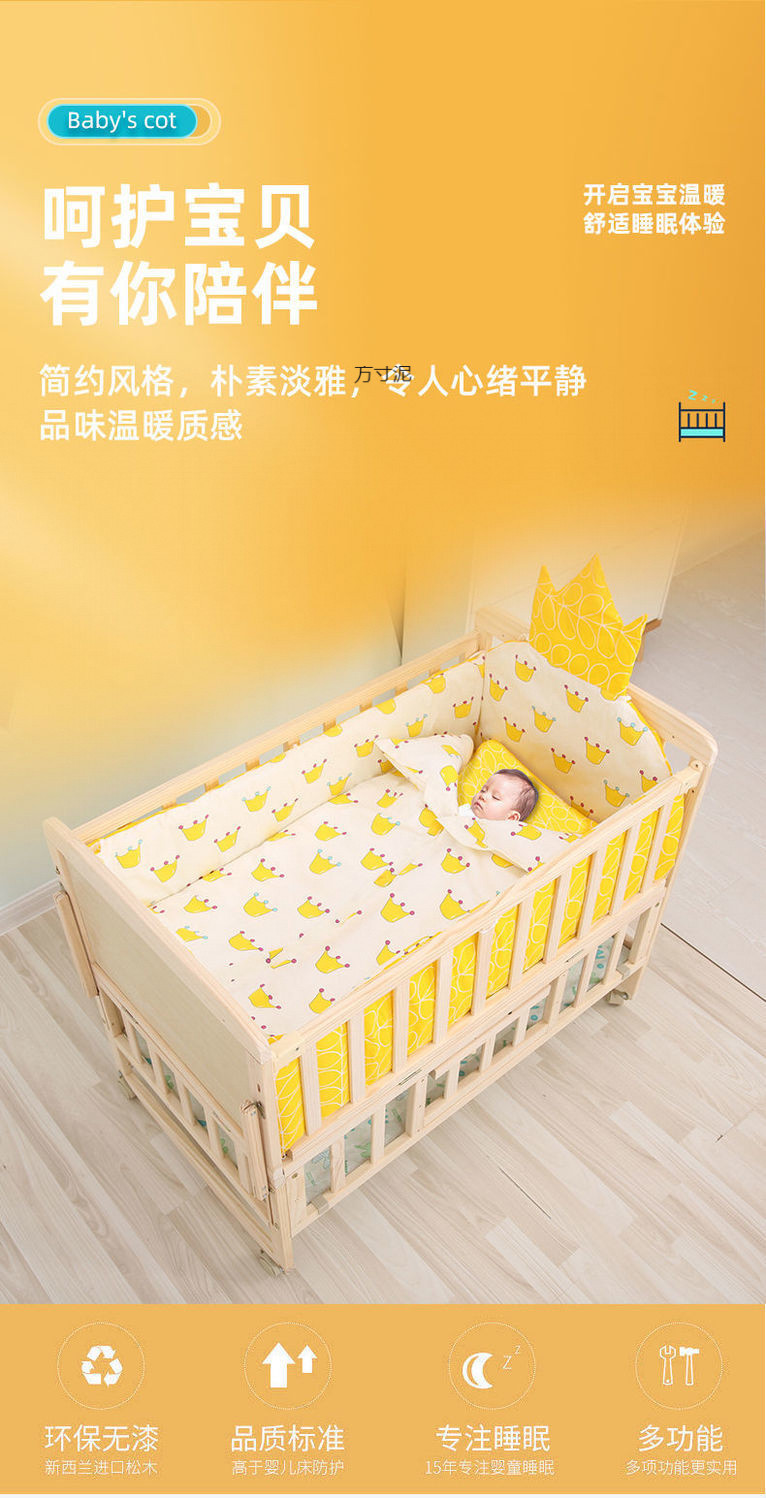 Кроватка из массива дерева, сплошная большая кровать, съемная кроватка для новорожденных, колыбель, многофункциональная детская кровать, фабрика