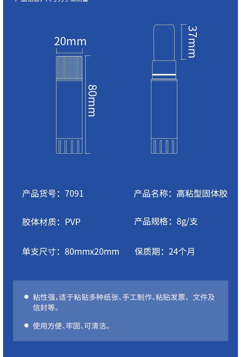 Deli 7091 Твердый клей (белый) (8г/штука)