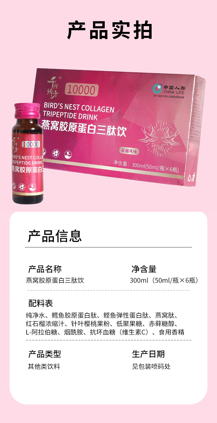 📦 | Bird's nest collagen peptide 50ml*6 bottles | 2шт: ¥6.75, 24шт: ¥6.65, 240шт: ¥6.60 | 634 | 5807697393298 |